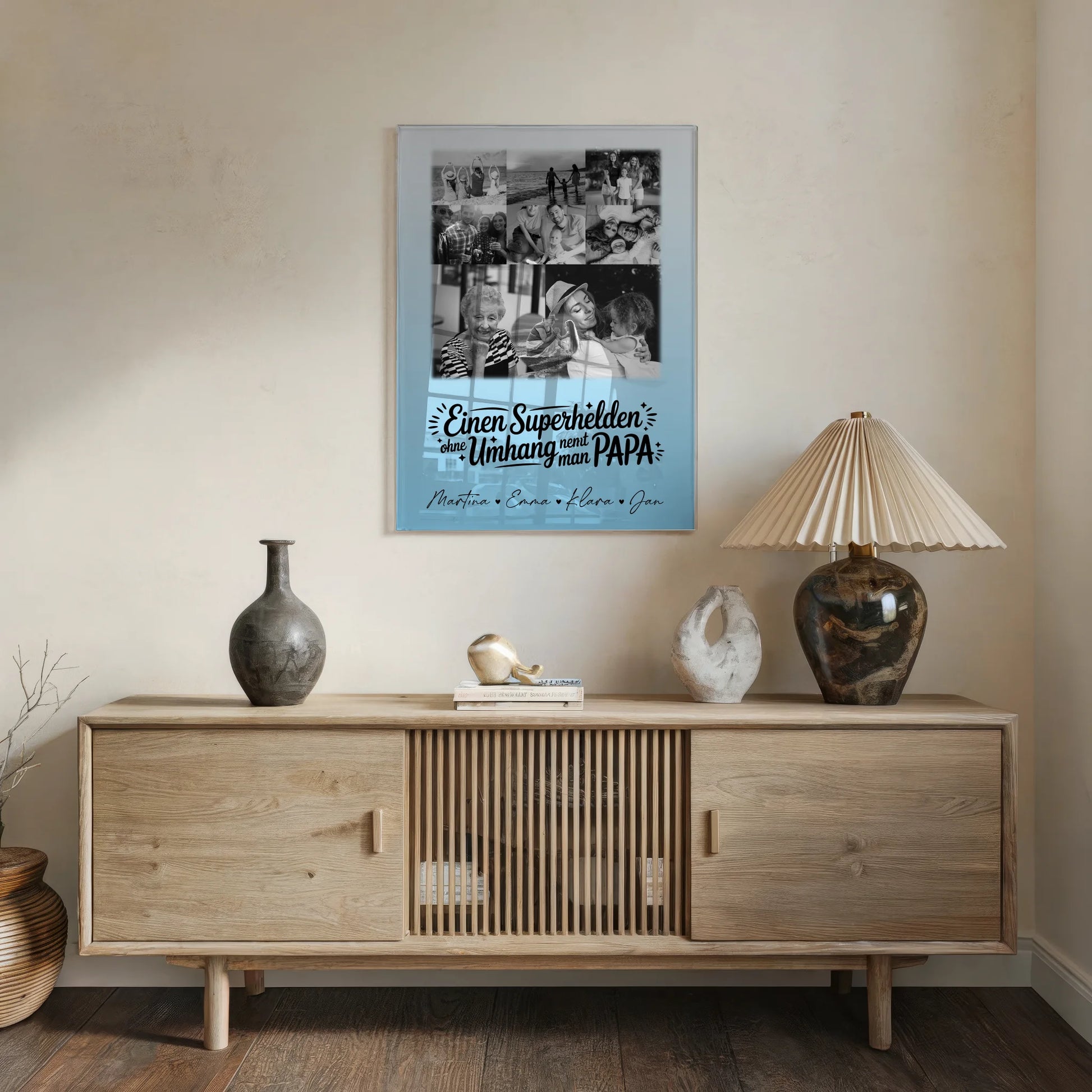 Überrasche deinen Papa mit unserem einzigartigen Produkt „Personalisiertes Foto Mit Acrylglas 8 Fotos und 1 Herz Foto Bruder ist mein Held Schwarz-Weiß“. Dieses individuelle Geschenk ist ideal, um deine Liebe und Wertschätzung auf besondere Weise zu zeigen. Du kannst dieses besondere Fotocollage für Papa ganz nach deinen Wünschen gestalten: Füge bis zu 9 Fotos, einen persönlichen Spruch oder Wunschtext sowie die Namen deiner Familie hinzu. Das Design zeigt den schönen Spruch: „Einen Superhelden ohne Umhang nennt man Bruder“, was dieses Geschenk zu einem emotionalen Highlight macht. Das hochwertige Acrylglas sorgt für eine elegante Präsentation deiner Fotos und macht das Geschenk zu einem echten Blickfang. Perfekt geeignet für den Anlass Vatertag, um deinem Papa zu zeigen, wie sehr du ihn schätzt. Dieses personalisierte Geschenk ist ideal für alle Väter, die ihre Familie und ihre Rolle als Bruder und Held in einem einzigartigen Design feiern möchten. Überrasche deinen Papa mit dieser individuellen Fotocollage für Papa und mache den Vatertag unvergesslich!