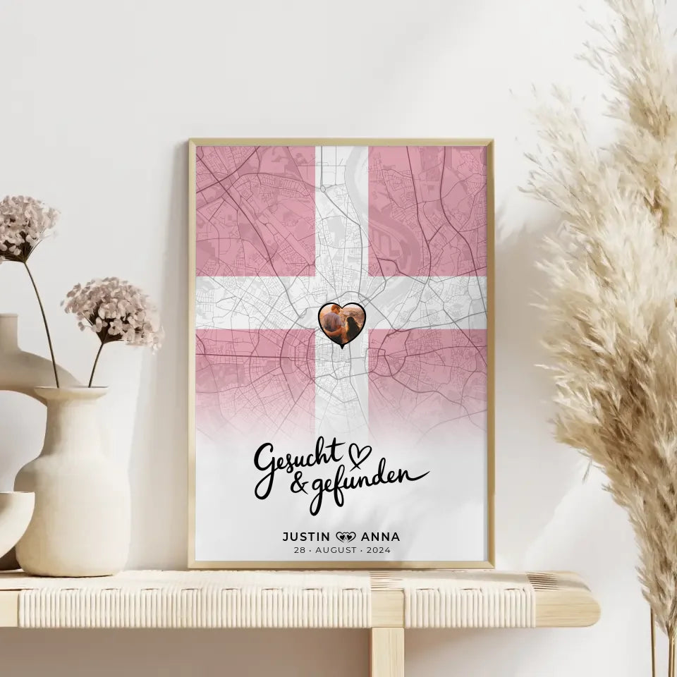 Personalisiertes Foto Poster für Paare mit Stadtkarte Dänemark gesucht gefunden