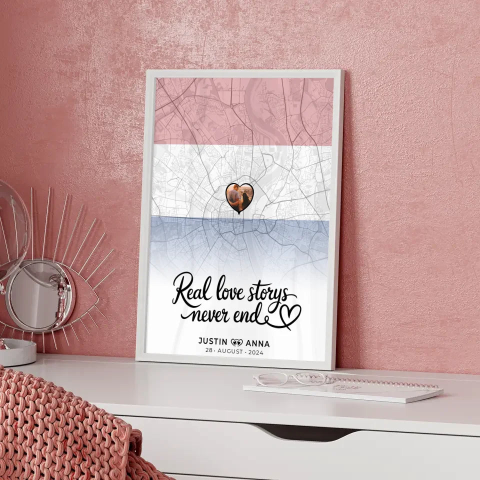 Personalisiertes Foto Poster für Paare Stadtkarte Niederlande Real Love Storys