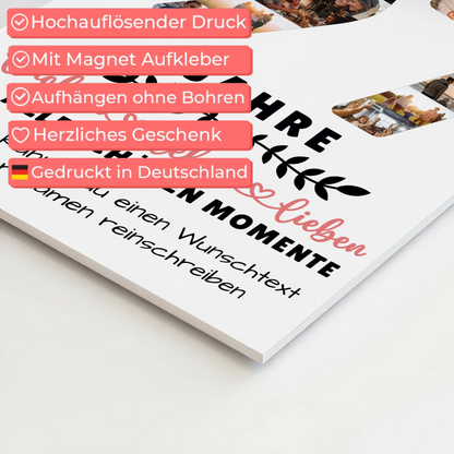 Überrasche deine Liebsten mit einem einzigartigen Geschenk zum 97 Geburtstag – dem personalisierten Fotoboard Magnet Poster. Dieses besondere Andenken ist perfekt für Opa, Oma, Mama, Papa oder andere Familienmitglieder und Freunde. Gestalte dein individuelles Poster ganz nach deinen Wünschen, indem du über 20+ Fotos, den Namen des Geburtstagskinds, einen Wunschtext sowie ein Hintergrundbild auswählst. Das personalisierte Fotoboard Magnet Poster ist nicht nur ein dekoratives Highlight, sondern auch eine liebevolle Erinnerung an gemeinsame Momente. Es eignet sich ideal als Geschenk für Papa, Mama, Sohn, Tochter, Bruder, Schwester, beste Freundin, Neffe oder Nichte. Mit diesem einzigartigen Präsent machst du den 97 Geburtstag unvergesslich und zeigst deine Wertschätzung auf besondere Weise. Das personalisierte Fotoboard Magnet Poster ist vielseitig einsetzbar und bringt Freude in jedes Zuhause – egal ob bei Oma, Opa oder anderen Familienmitgliedern. Überzeuge dich selbst von der hochwertigen Verarbeitung und der persönlichen Gestaltungsmöglichkeit dieses besonderen Geschenks für jeden Anlass rund um den 97 Geburtstag.