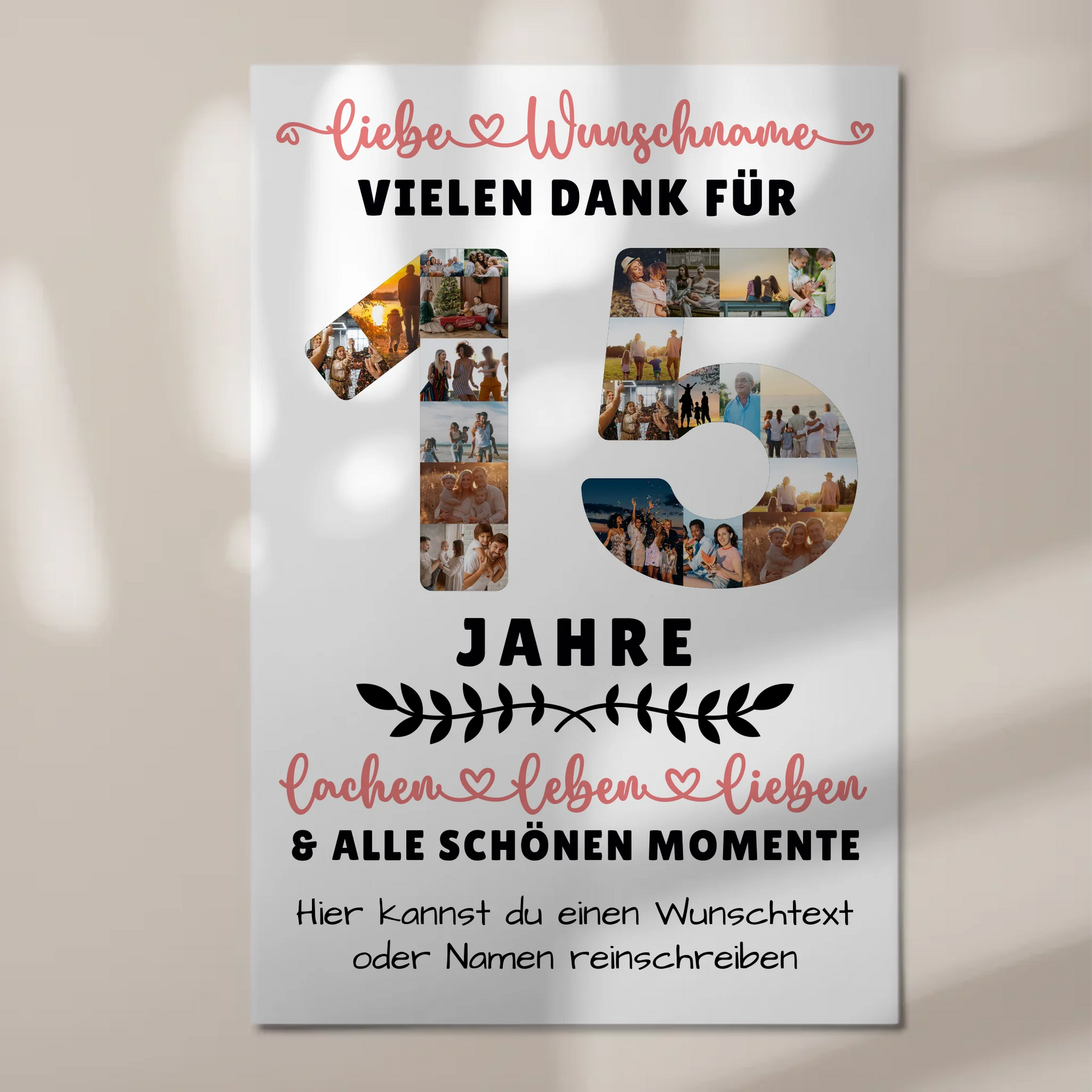 Überrasche deinen Lieblingsmenschen zum 15. Geburtstag mit einem einzigartigen und persönlichen Geschenk – dem personalisierten Fotoboard Magnet Wandbild. Dieses besondere Geschenk ist perfekt für Sohn, Tochter, Bruder, Schwester, Nichte oder Neffe und sorgt garantiert für strahlende Augen. Das personalisierte Fotoboard Magnet Wandbild bietet dir die Möglichkeit, über 20+ Fotos, den Namen, einen Wunschtext sowie ein Hintergrundbild individuell zu gestalten. So entsteht ein einzigartiges Erinnerungsstück, das die schönsten Momente festhält und immer wieder Freude bereitet. Ob für Papa, Mama, Oma, Opa oder die beste Freundin – dieses Geschenk ist vielseitig einsetzbar und macht jeden Anlass unvergesslich. Das personalisierte Fotoboard Magnet Wandbild ist ideal für den 15 Geburtstag und eignet sich hervorragend als persönliches Präsent für Kinder und Jugendliche. Zeige deine Liebe und Wertschätzung mit einem individuell gestalteten Wandbild, das die besonderen Beziehungen zwischen dir und deinem Kind oder Enkel widerspiegelt. Mit diesem einzigartigen Geschenk machst du den Tag deines Lieblings noch besonderer – egal ob für Sohn, Tochter, Bruder, Schwester oder Nichte & Neffe. Bestelle jetzt dein personalisiertes Fotoboard Magnet Wandbild zum 15 Geburtstag und verschenke eine bleibende Erinnerung voller Liebe und Persönlichkeit.