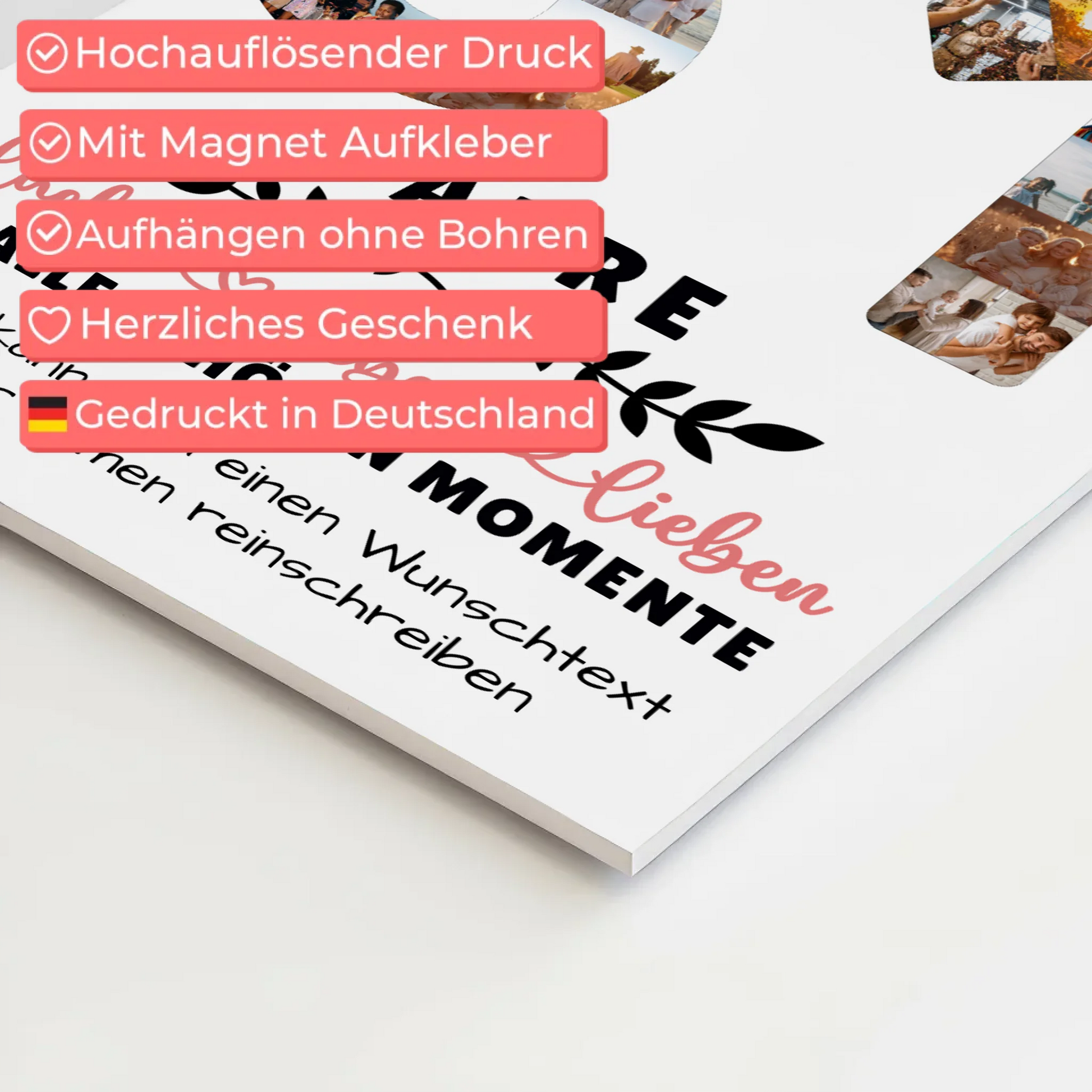 Überrasche deine Liebsten mit einem einzigartigen und persönlichen Geschenk – dem personalisierten Fotoboard Magnet Wandbild 51 Geburtstag Für Schwester Bruder Papa & Mama. Dieses individuelle Wandbild ist die ideale Geschenkidee, um besondere Momente und Erinnerungen stilvoll zu präsentieren. Du kannst bei diesem Geschenk mehr als 20 Fotos, den Namen, einen Wunschtext sowie das Hintergrundbild ganz nach deinen Wünschen gestalten. Damit wird dein personalisiertes Fotoboard Magnet Wandbild zu einem echten Blickfang in jedem Zuhause. Ob für Papa, Mama, Sohn, Tochter, Bruder, Schwester oder auch für die beste Freundin – dieses kreative Geschenk passt perfekt zu jedem Anlass und macht den 51 Geburtstag unvergesslich. Es eignet sich hervorragend als persönliches Präsent für Oma, Opa, Tante oder Neffe und Nichte. Mit diesem individuellen Wandbild schenkst du nicht nur ein dekoratives Element, sondern auch eine emotionale Erinnerung an gemeinsame Momente. Überzeuge dich selbst von der hochwertigen Verarbeitung und der liebevollen Gestaltung dieses personalisierten Produkts. Das personalisierte Fotoboard Magnet Wandbild ist das ideale Geschenk für jeden Familienmitglied oder Freund – egal ob zum Geburtstag oder anderen besonderen Anlässen.