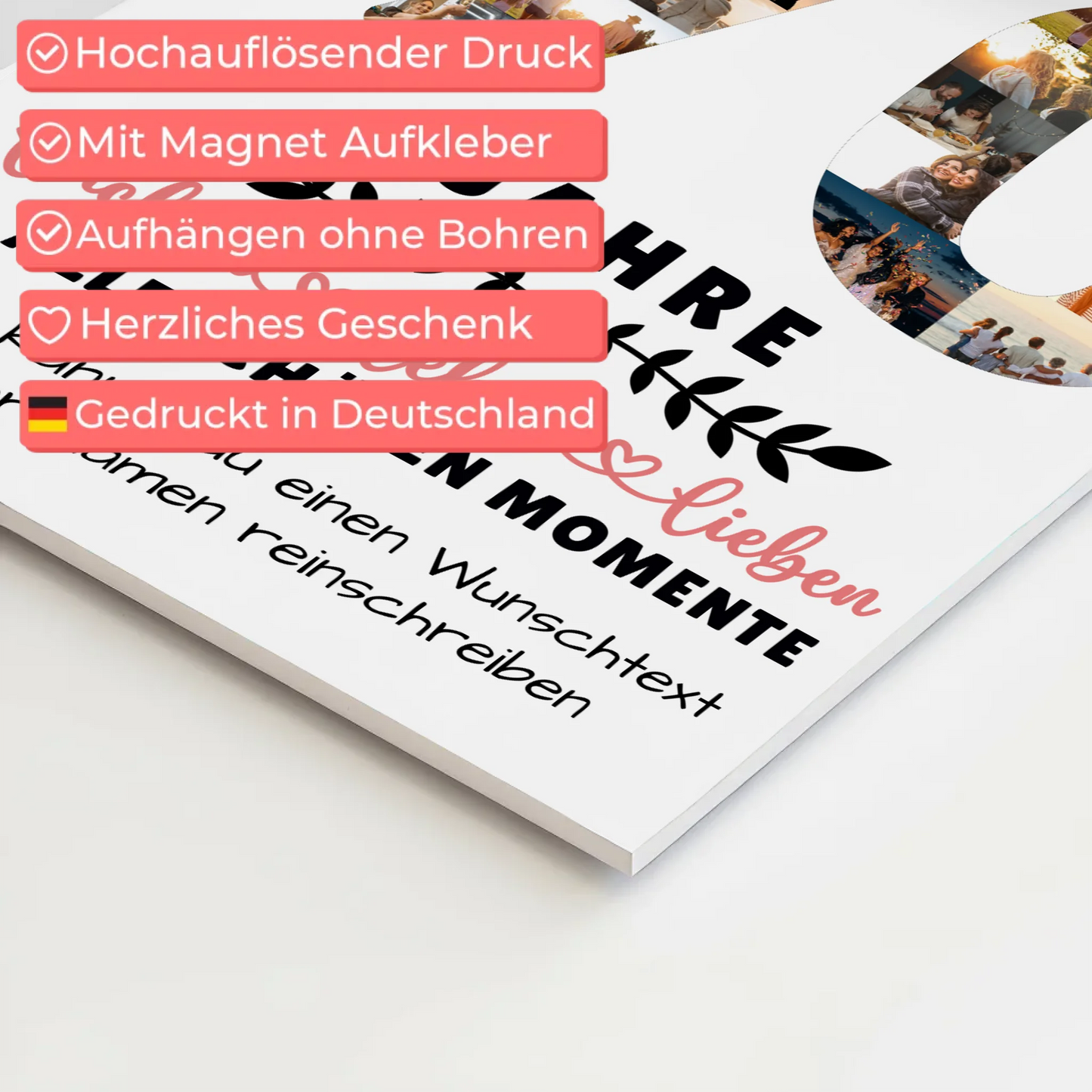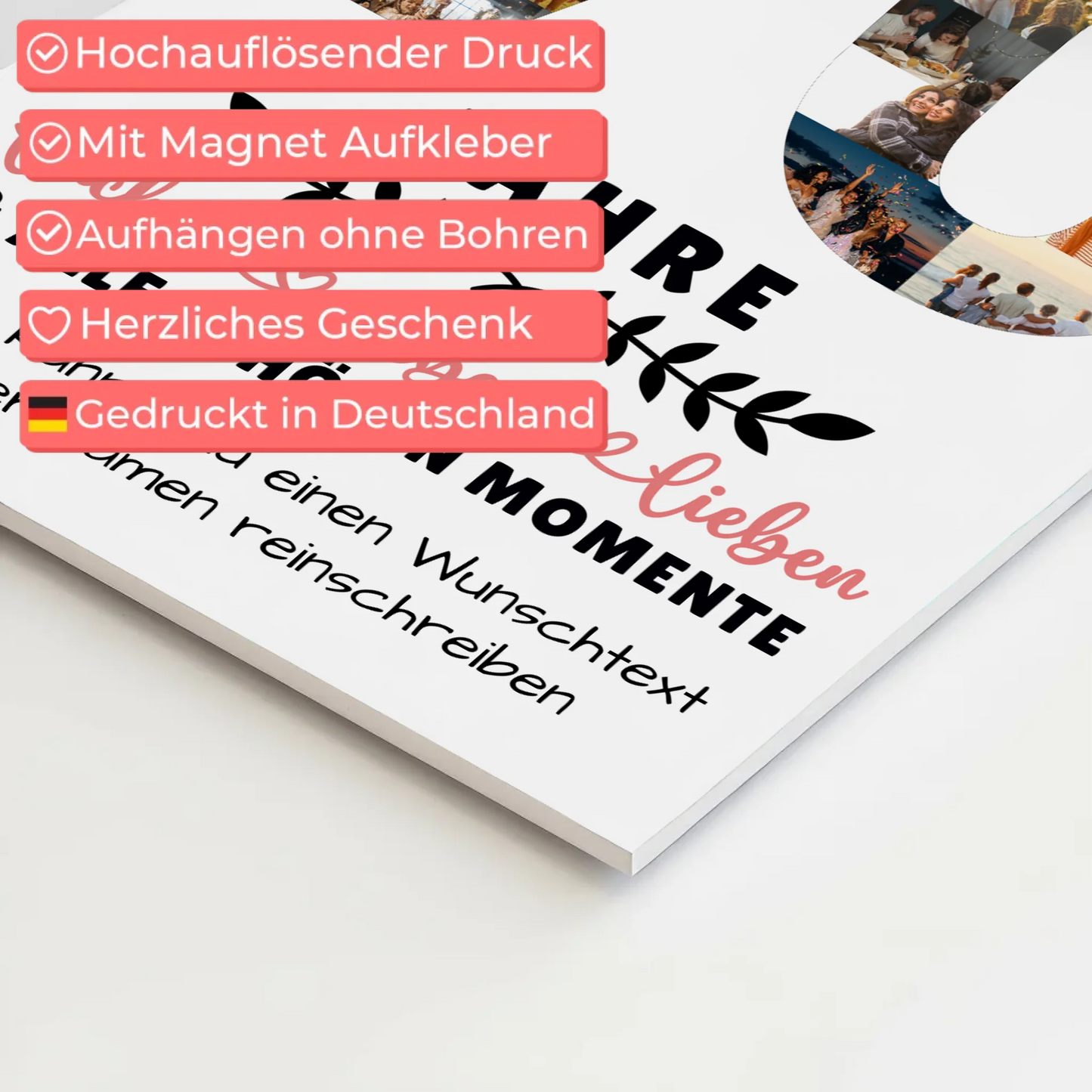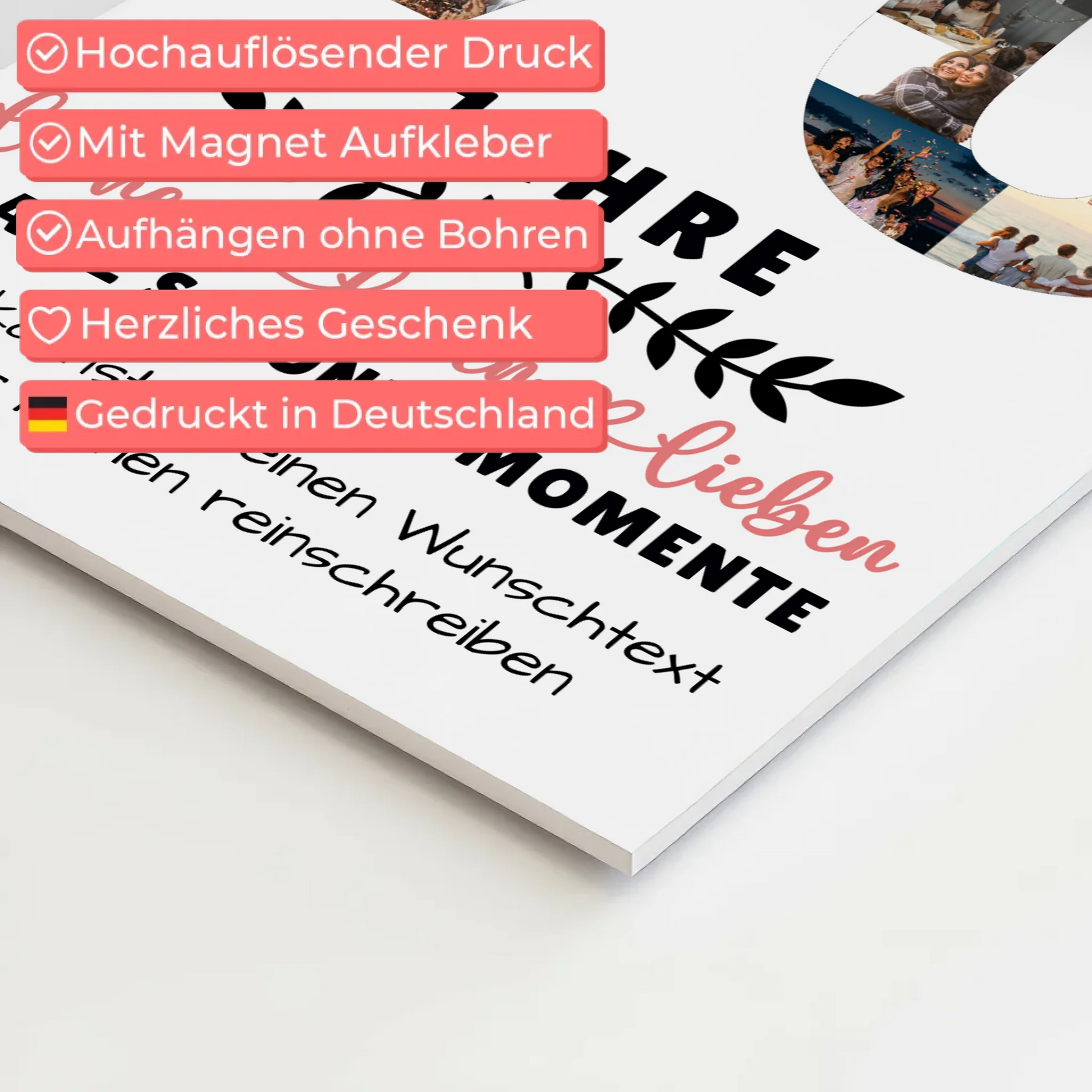Mach den besonderen Tag deines Lieblingsmenschen unvergesslich mit unserem personalisierten Fotoboard Magnet Wandbild zum 70 Geburtstag. Dieses einzigartige Geschenk ist perfekt für Papa, Mama, Oma, Opa sowie für alle Familienmitglieder wie Sohn, Tochter, Bruder, Schwester, beste Freundin, Neffe, Nichte oder Tante. Das personalisierte Fotoboard Magnet Wandbild bietet dir die Möglichkeit, über 20+ Fotos sowie Namen, Wunschtexte und Hintergrundbilder individuell zu gestalten. So kannst du ein emotionales und persönliches Geschenk kreieren, das garantiert für Freude sorgt. Das personalisierte Fotoboard Magnet Wandbild ist nicht nur eine schöne Dekoration, sondern auch ein liebevolles Erinnerungsstück an gemeinsame Momente. Überrasche deine Liebsten zum 70 Geburtstag mit einem einzigartigen Geschenk, das ihre Persönlichkeit widerspiegelt und sie immer an besondere Zeiten erinnert. Egal ob für Papa, Mama oder die Großeltern – dieses individuelle Wandbild ist die perfekte Wahl für ein bedeutendes Jubiläum und zeigt deine Wertschätzung auf besondere Weise.