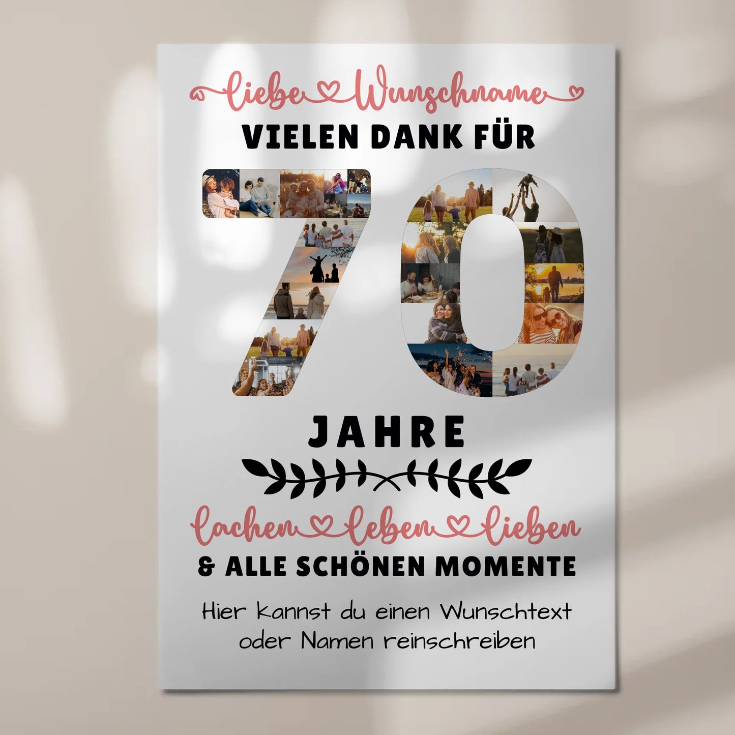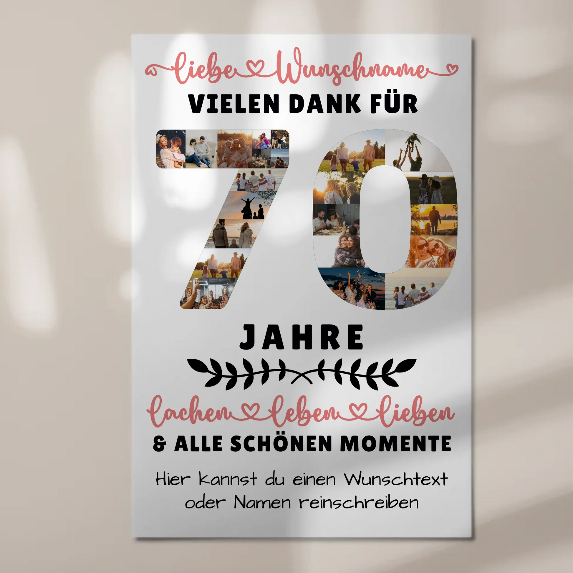 Personalisiertes Fotoboard Magnet Wandbild 70 Geburtstag Für Papa Mama Oma & Opa