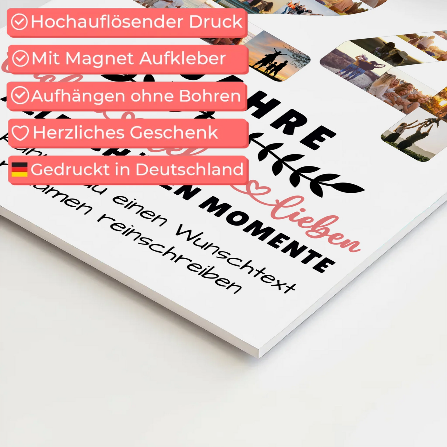 Überrasche deine Liebsten mit einem einzigartigen und persönlichen Geschenk – dem personalisierten Fotoboard Magnetisch 24 Geburtstag Für Tochter Sohn Bruder Neffe Nicht & Schwester. Dieses individuell gestaltbare Fotoboard ist das ideale Präsent, um besondere Momente festzuhalten und zu verschenken. Du kannst bei diesem Geschenk über 20+ Fotos, den Namen, einen Wunschtext sowie ein Hintergrundbild nach deinen Wünschen personalisieren. So entsteht ein einzigartiges Erinnerungsstück, das garantiert für Freude sorgt. Das personalisierte Fotoboard Magnetisch ist perfekt geeignet für den 24 Geburtstag, aber auch für andere Anlässe wie Geburtstage von Papa, Mama, Sohn, Tochter, Bruder, Schwester, beste Freundin, Neffe, Nichte oder Oma und Opa. Es ist ein liebevolles Geschenk für jeden in deiner Familie oder deinem Freundeskreis. Mit diesem individuellen Fotoboard zeigst du deine Wertschätzung und machst den besonderen Tag unvergesslich. Das magnetische Design ermöglicht eine einfache Befestigung der Fotos und Texte und sorgt für eine moderne Optik. Überzeuge dich selbst von der Qualität und Einzigartigkeit dieses personalisierten Geschenks – das perfekte Präsent für alle, die persönliche Erinnerungen schätzen.