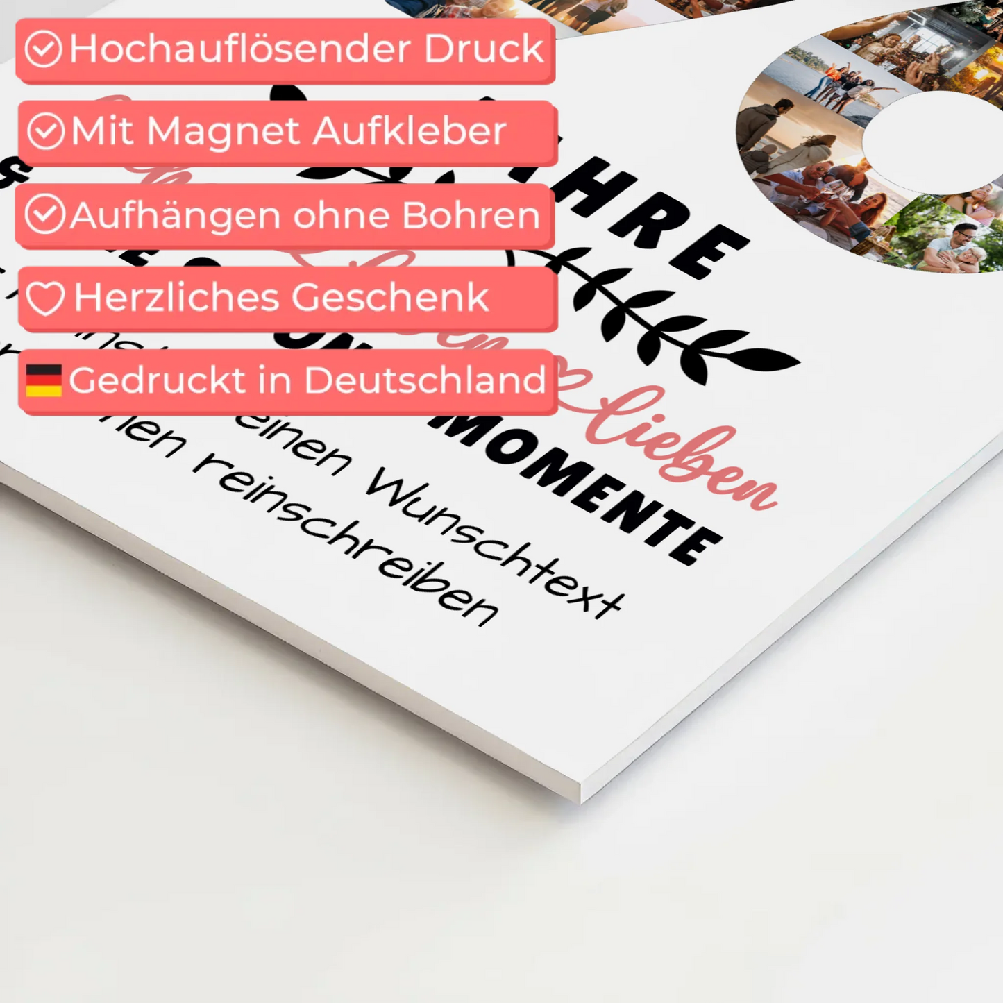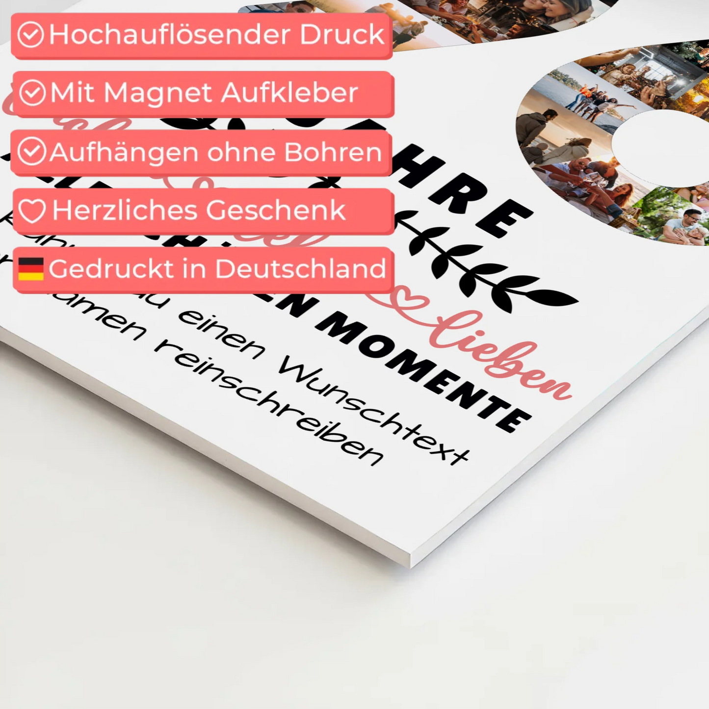 Entdecken Sie unser einzigartiges Fotoboard, das Ihre Lieblingsbilder in bestechender Qualität präsentiert. Die 5 mm dicke Hartschaumplatte mit matter Oberfläche bietet eine besondere optische Raffinesse. Die weiße Kante mit rechtwinkligen Ecken verleiht einen eleganten Rahmen. Die mühelose Aufhängung durch Magnet-Aufkleber ermöglicht eine ideale Befestigung auf verschiedenen Wandoberflächen. Dank des hochwertigen Direktdruckverfahrens erscheinen Ihre Bilder gestochen scharf und in brillanten Farben. Verleihen Sie Ihren Räumen eine persönliche Note mit diesem leichten Fotoboard, ideal für empfindliche Wände und spezielle Bereiche wie Küche oder Bad. Holen Sie sich jetzt Ihr individuelles Fotoboard und bringen Sie Ihre Erinnerungen stilvoll zur Geltung.