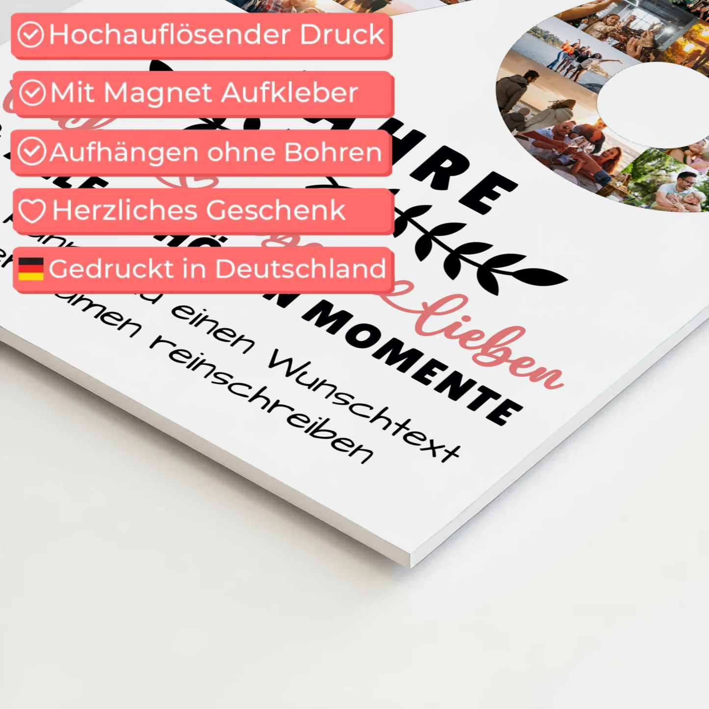 Entdecken Sie unser einzigartiges Fotoboard, das Ihre Lieblingsbilder in bestechender Qualität präsentiert. Die 5 mm dicke Hartschaumplatte mit matter Oberfläche sorgt für besondere optische Raffinesse; die weiße Kante mit rechtwinkligen Ecken bildet einen eleganten Rahmen. Dank hochwertigem Direktdruck erscheinen Ihre Fotos gestochen scharf und in brillanten Farben. Leicht und wandfreundlich - ideal für empfindliche Wände sowie Bereiche wie Küche oder Bad. Mit praktischem Magnet-Aufhängeset ganz einfach und ohne Bohren montiert.