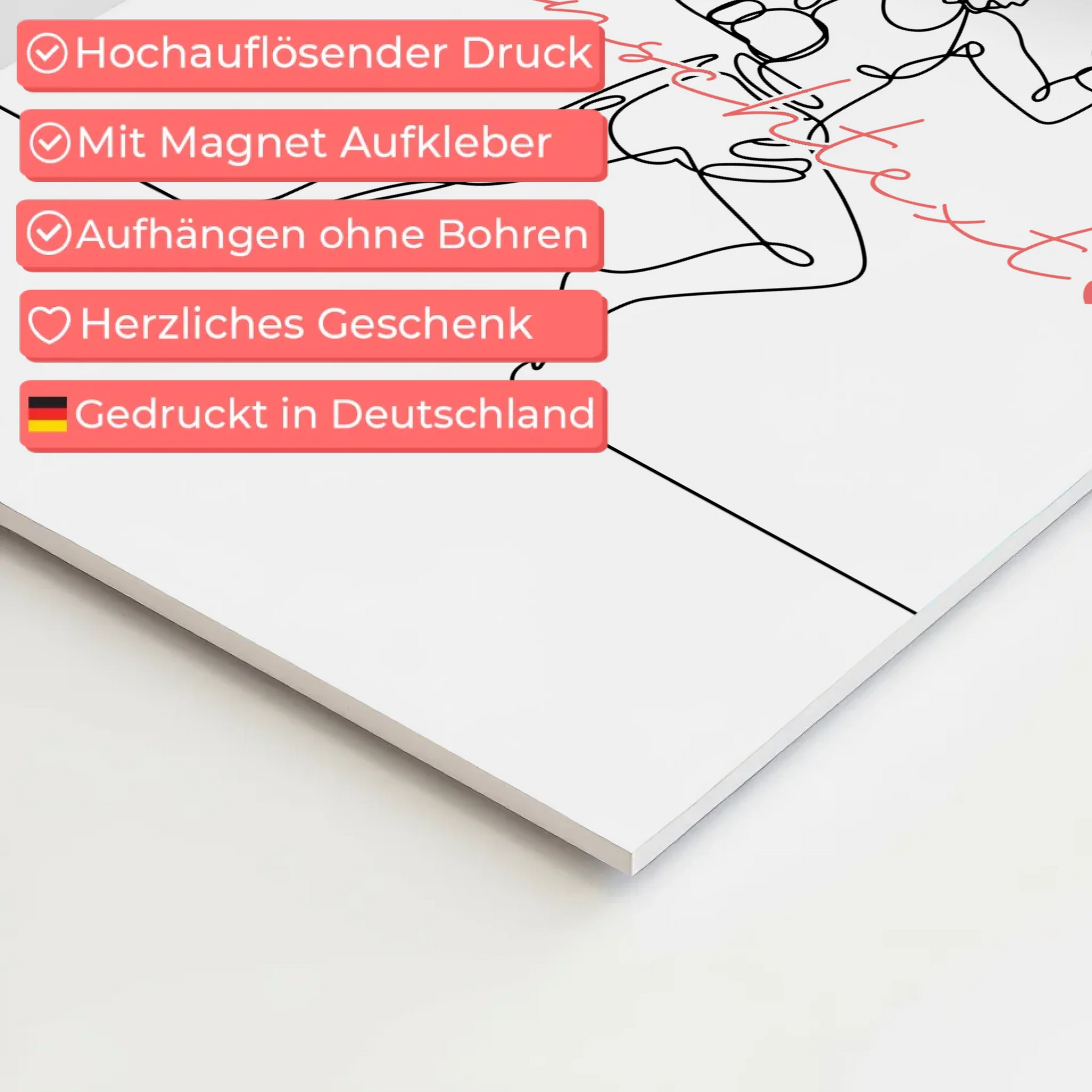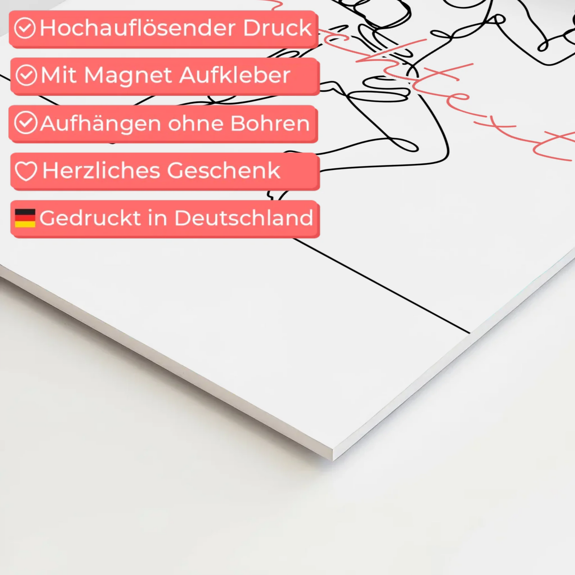 Entdecke das perfekte Geschenk für alle Kickboxer, Kickboxerinnen und Fans des Kickboxens mit unserem personalisierten Fotoboard Magnetisch Lineart Kickboxen Geschenk Tochter & Schwester. Dieses einzigartige Produkt vereint individuelle Gestaltungsmöglichkeiten mit einem stilvollen Design und ist ideal für jeden Anlass. Du kannst bei diesem personalisierten Fotoboard Magnetisch Lineart deinen Wunschtext, den Namen deiner Liebsten sowie ein Hintergrundbild nach deinen Vorstellungen hinzufügen, um ein ganz persönliches Highlight zu schaffen. Ob zum Geburtstag, zu Weihnachten oder einfach als kleine Aufmerksamkeit – dieses Geschenk begeistert jede Tochter und Schwester, die sich für Kickboxing begeistern. Das magnetische Fotoboard eignet sich hervorragend als Dekoration im Trainingsraum oder Zuhause und bringt die Leidenschaft für das Kickboxen auf eine besondere Art zum Ausdruck. Mit diesem personalisierten Produkt zeigst du deine Wertschätzung und unterstützt die Motivation deiner Lieblings-Kickboxerin oder deines Lieblings-Kickboxers. Überrasche sie mit einem individuellen Geschenk, das ihre Liebe zum Kickboxing widerspiegelt und gleichzeitig einzigartig bleibt. Das personalisierte Fotoboard Magnetisch Lineart ist nicht nur ein tolles Geschenk für Kickboxer, sondern auch eine schöne Erinnerung an gemeinsame Momente im Training oder Wettkampf. Mach dein Präsent unvergesslich – perfekt geeignet für jeden Anlass!