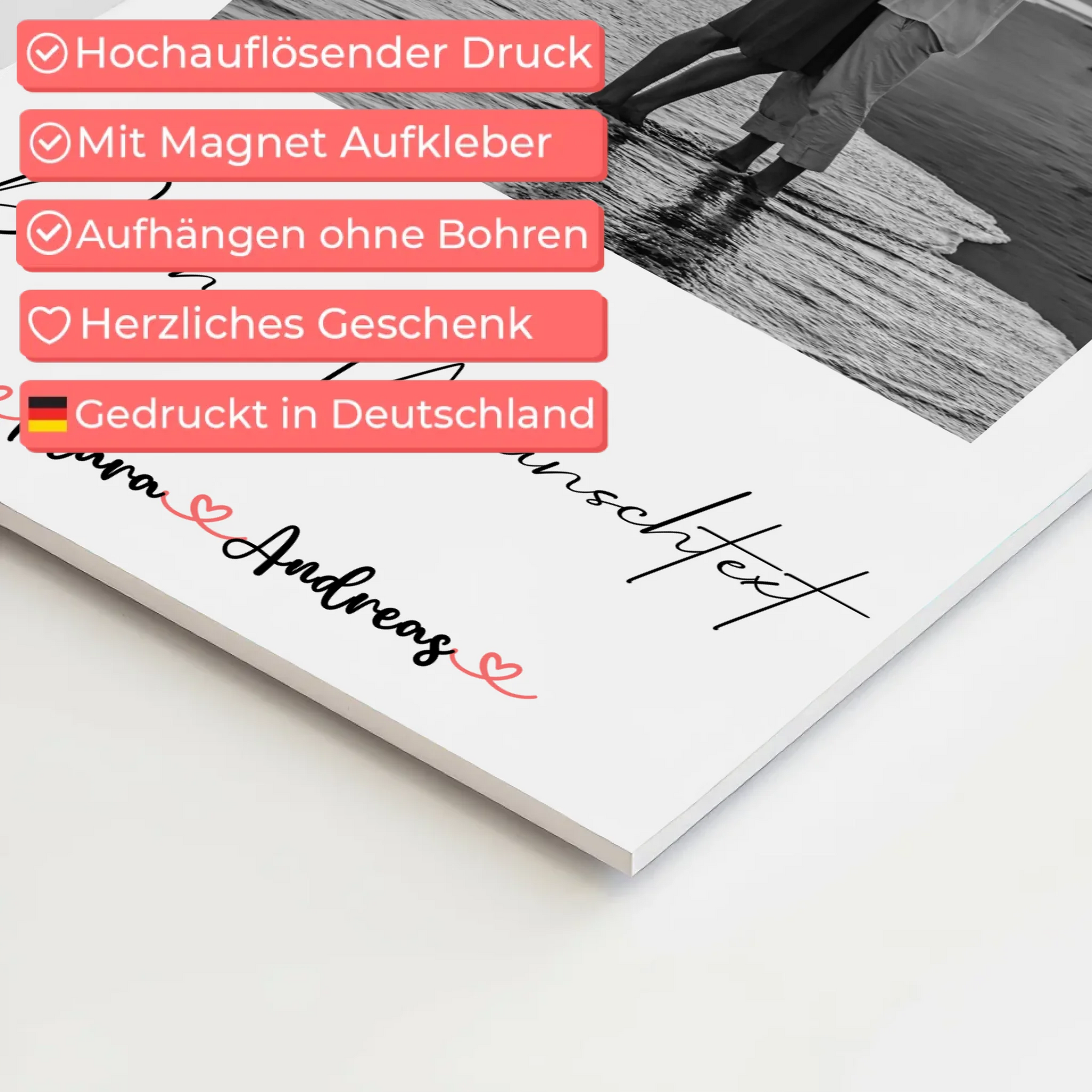 Personalisiertes Fotoboard mit Foto, Namen & Wunschtext für Paare Black & White