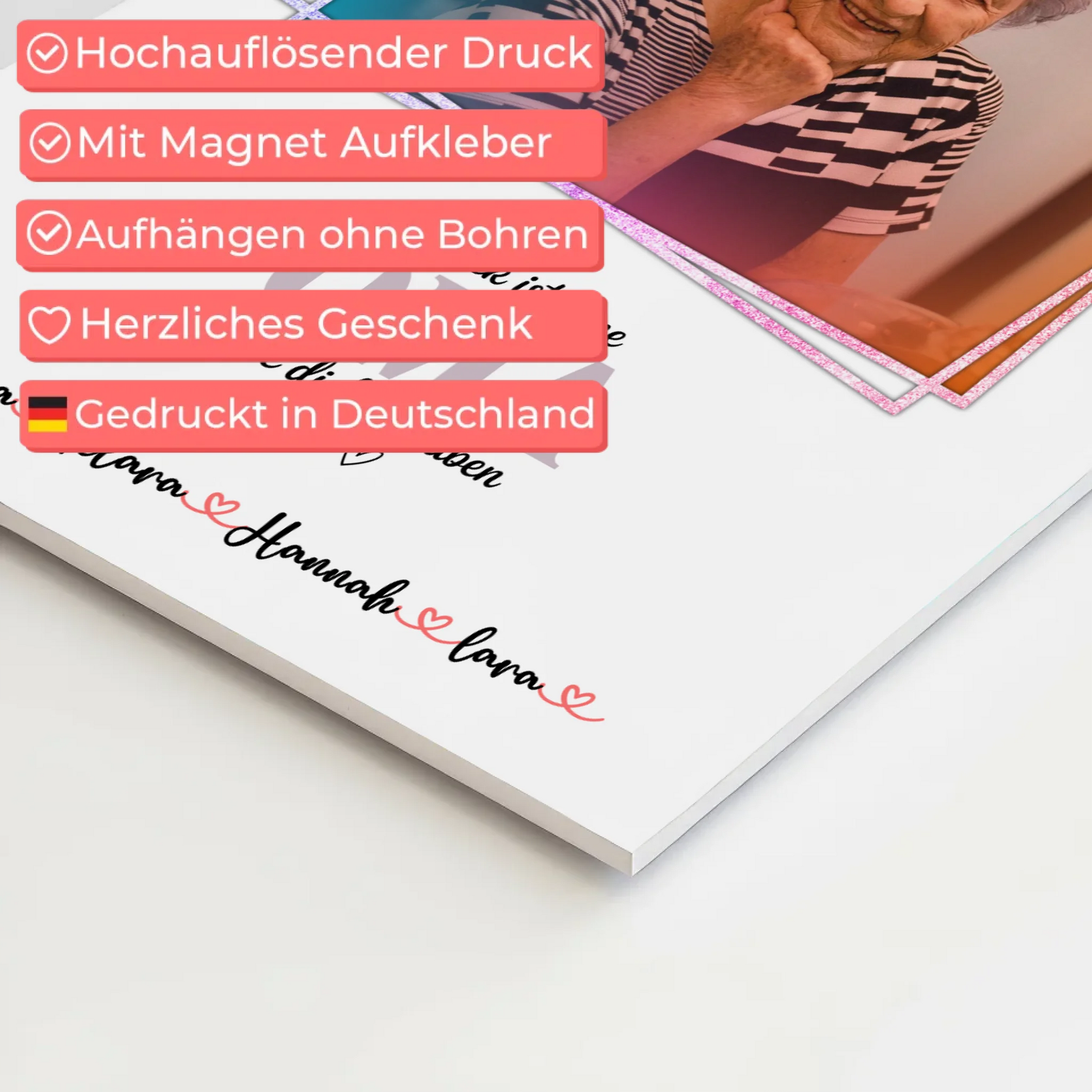 Dieses personalisierte Fotoboard ist die perfekte Geschenkidee für deine Oma zum Muttertag und wird mit einem Foto, Namen und deinem Wunschtext zu einem ganz persönlichen Erinnerungsstück. Du kannst ein einzelnes Foto einfügen, den Hintergrund gestalten und einen liebevollen Spruch ergänzen. Besonders geeignet für herzliche Momente, die im Wohnraum sichtbar bleiben sollen.