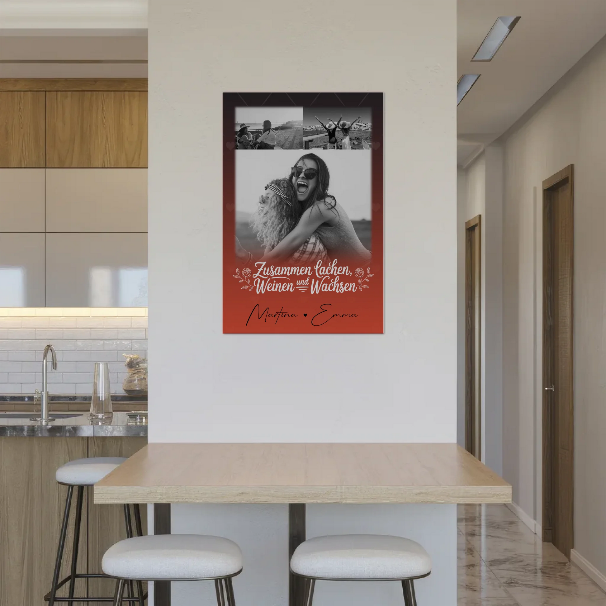 Überrasche deine Schwester mit einem einzigartigen und persönlichen Geschenk – dem Personalisiertes Fotoboard Poster Magnetisch mit 3 Fotos Zusammen lachen weinen. Dieses individuell gestaltbare Poster ist die perfekte Erinnerung an gemeinsame Momente und eignet sich ideal für Geburtstage oder besondere Anlässe. Du kannst das Poster ganz nach deinen Wünschen personalisieren, indem du 3 Fotos, einen eigenen Spruch oder Wunschtext sowie die Namen eingibst. Das Design trägt den schönen Spruch: „Zusammen lachen, weinen und wachsen“, der die besonderen Bindungen zwischen euch widerspiegelt. Das magnetische Fotoboard ist nicht nur dekorativ, sondern auch praktisch, da es leicht an metallischen Flächen befestigt werden kann. Dieses personalisierte Geschenk ist perfekt für deine Schwester, um eure gemeinsamen Erlebnisse auf eine kreative und liebevolle Weise festzuhalten. Mach den Geburtstag deiner Schwester unvergesslich mit diesem einzigartigen, personalisierten Fotoboard Poster – ein Geschenk, das immer in Erinnerung bleibt!