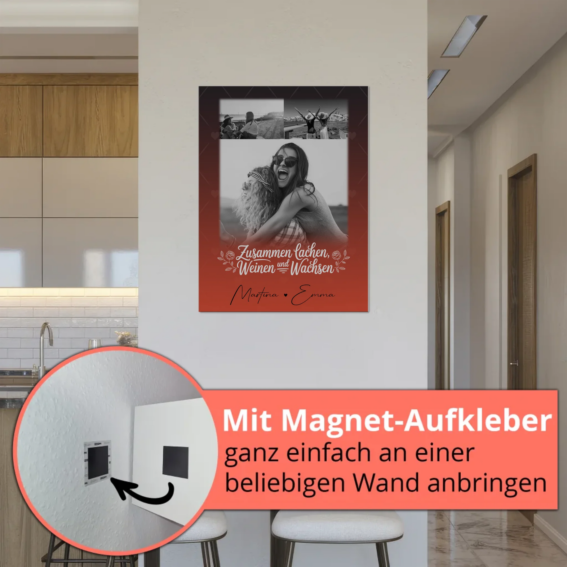 Personalisiertes Fotoboard Poster Magnetisch mit 3 Fotos Zusammen lachen weinen