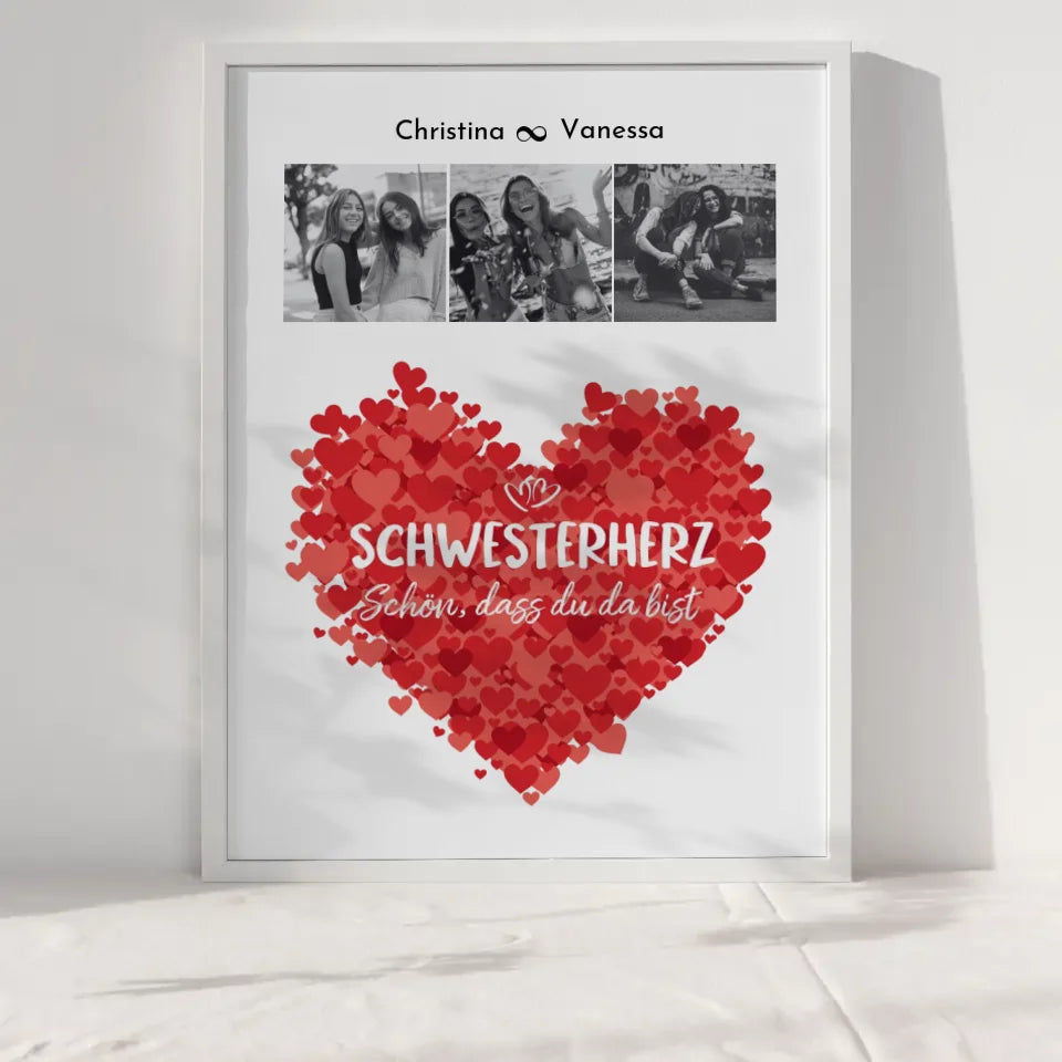 Unser Personalisiertes Fotoposter Schwester Schwesterherz Schön dass du da bist 3 Fotos
