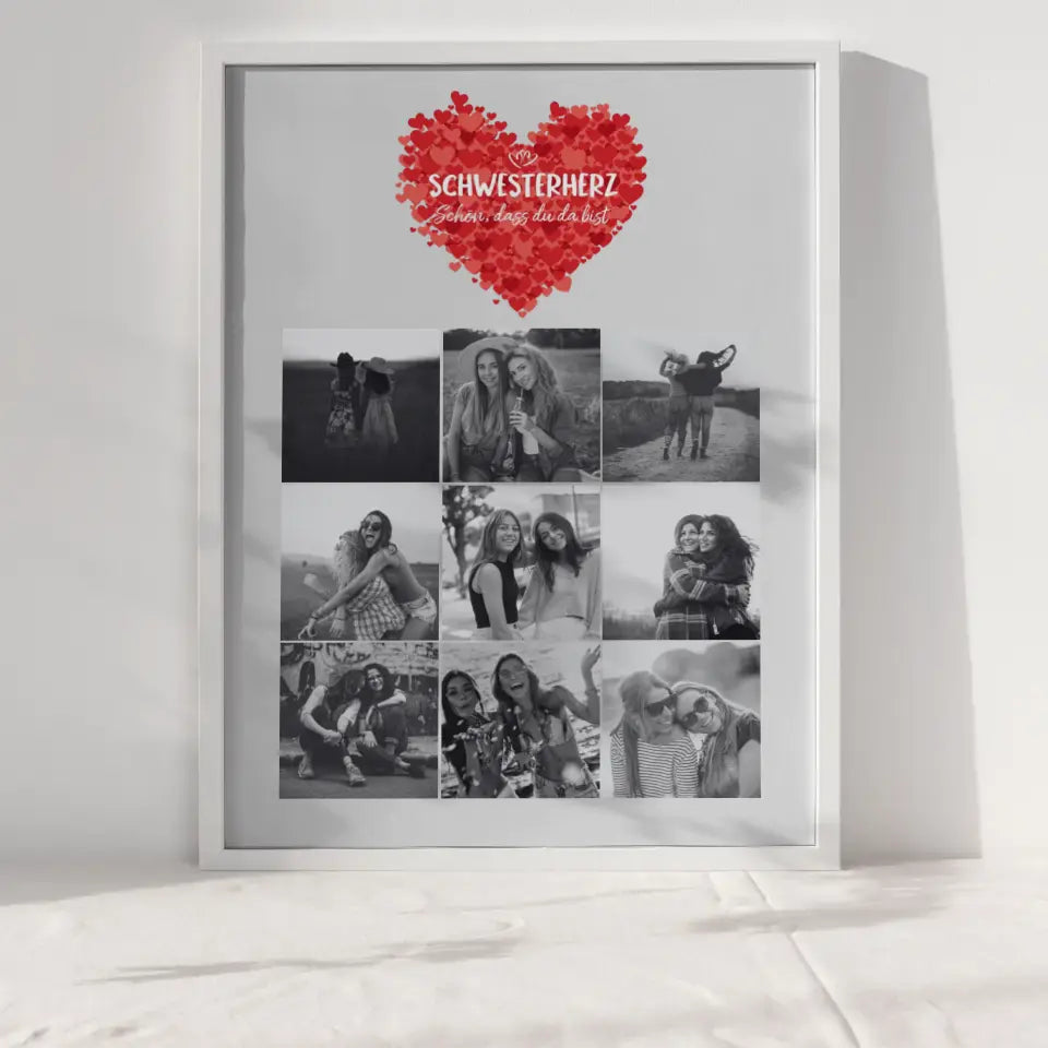 Personalisiertes Fotoposter Schwester Schwesterherz Schön dass du da bist 9 Fotos