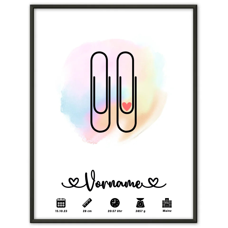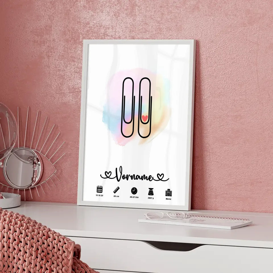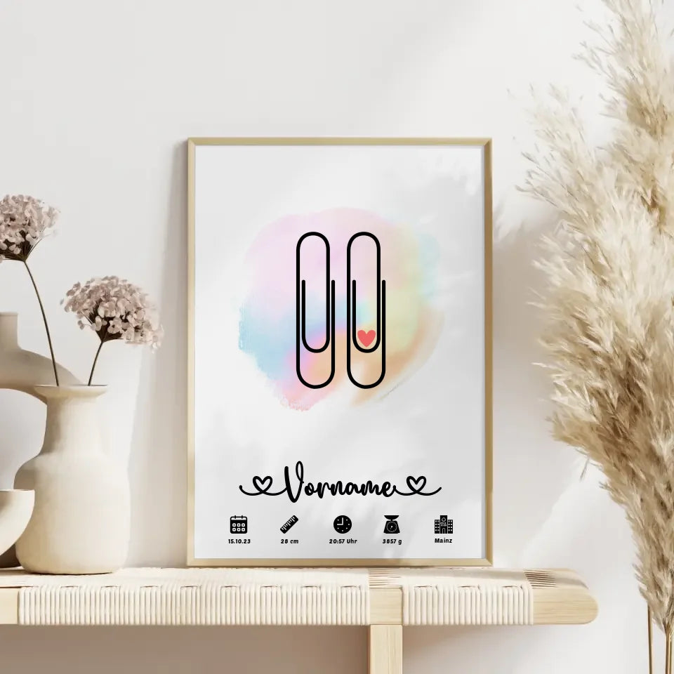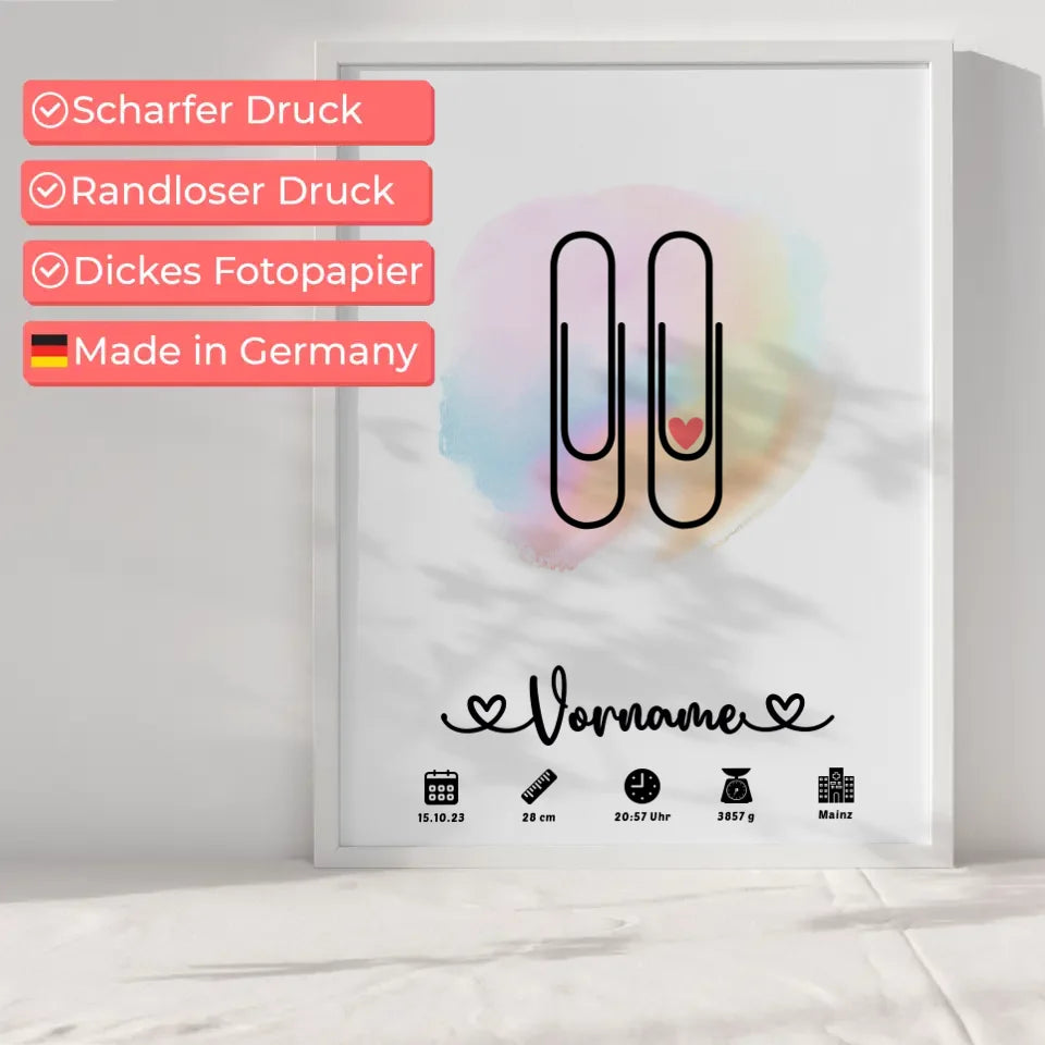 Verleihe dem Kinderzimmer mit unserem personalisierten Geburtsposter den perfekten Farbtupfer und halte die schönen Erinnerungen an den ersten Lebensmoment fest. Bestelle jetzt dein individuelles Geburtsposter und erfreue dich an einem einzigartigen Kunstwerk mit Herz!