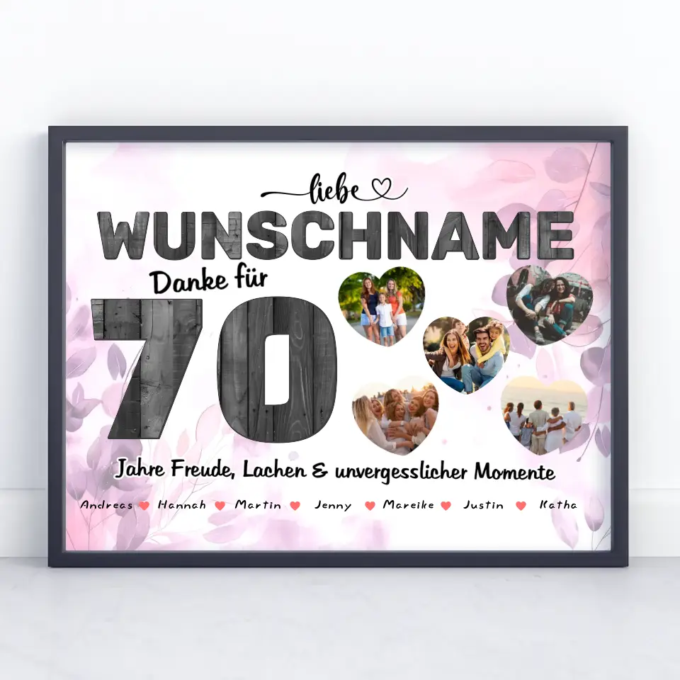 Personalisiertes Geburtstagsposter 70 Geburstag 5 Fotos