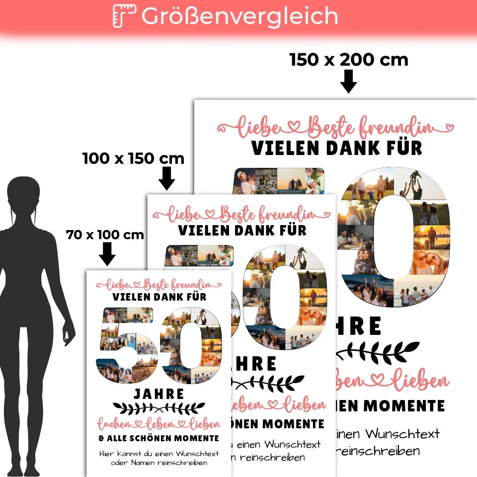 Warte nicht länger! Sichere dir jetzt die personalisierte Geschenk Decke Beste Freundin 50 Geburtstag Fotos und erlebe, wie einfach und schnell du ein unvergessliches Geschenk kreieren kannst, das garantiert für Freude sorgt.