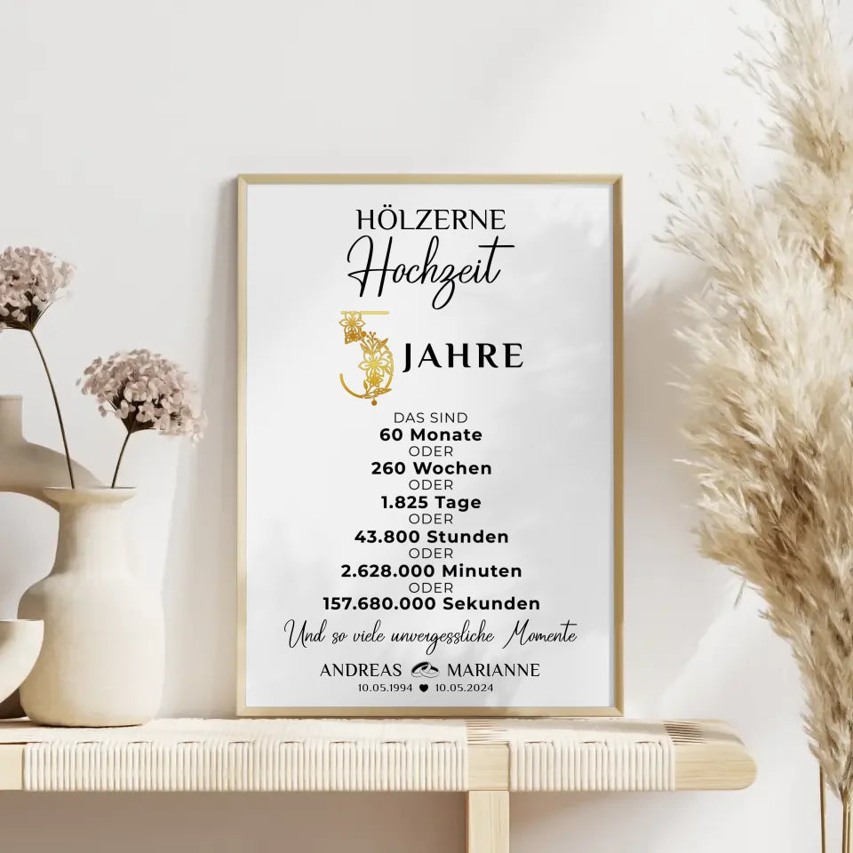 Personalisiertes Geschenk Poster für den 5 Hochzeitstag zur Hölzernen Hochzeit
