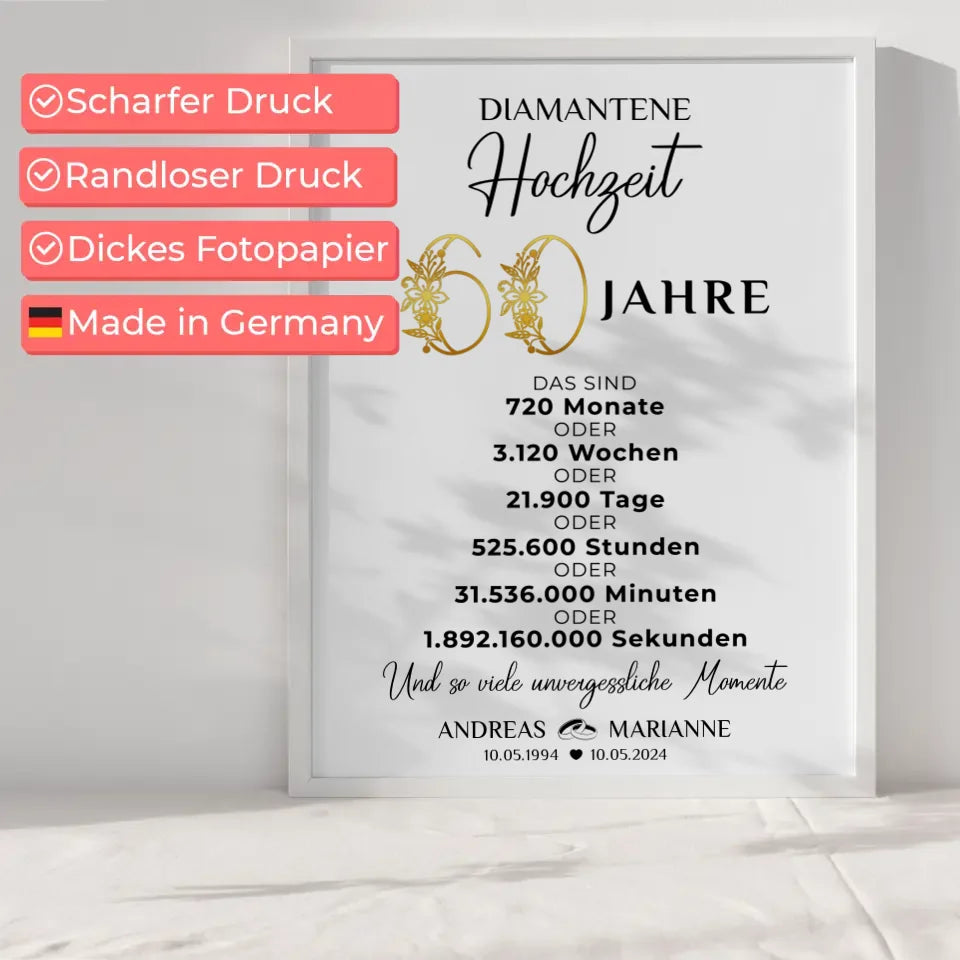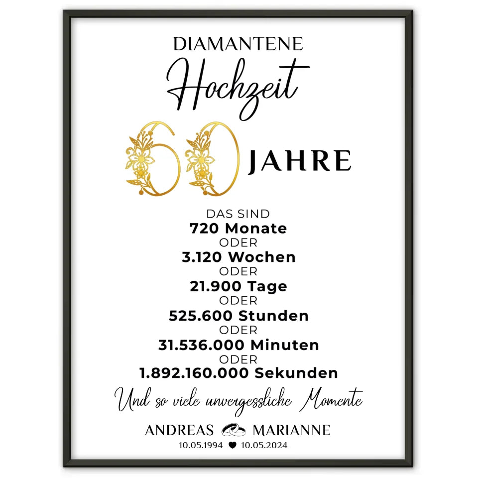 Personalisiertes Geschenk Poster für den 60 Hochzeitstag zur Diamantenen Hochzeit