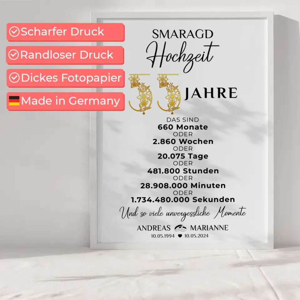 Personalisiertes Geschenk Poster Momente 55 Hochzeitstag zur Smaragdhochzeit