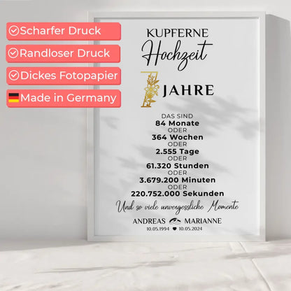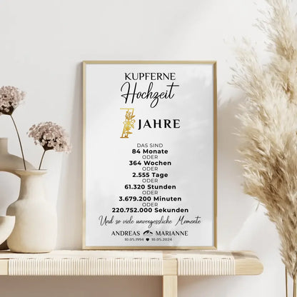 Personalisiertes Geschenk Poster Momente 7 Hochzeitstag zur Kupferne Hochzeit