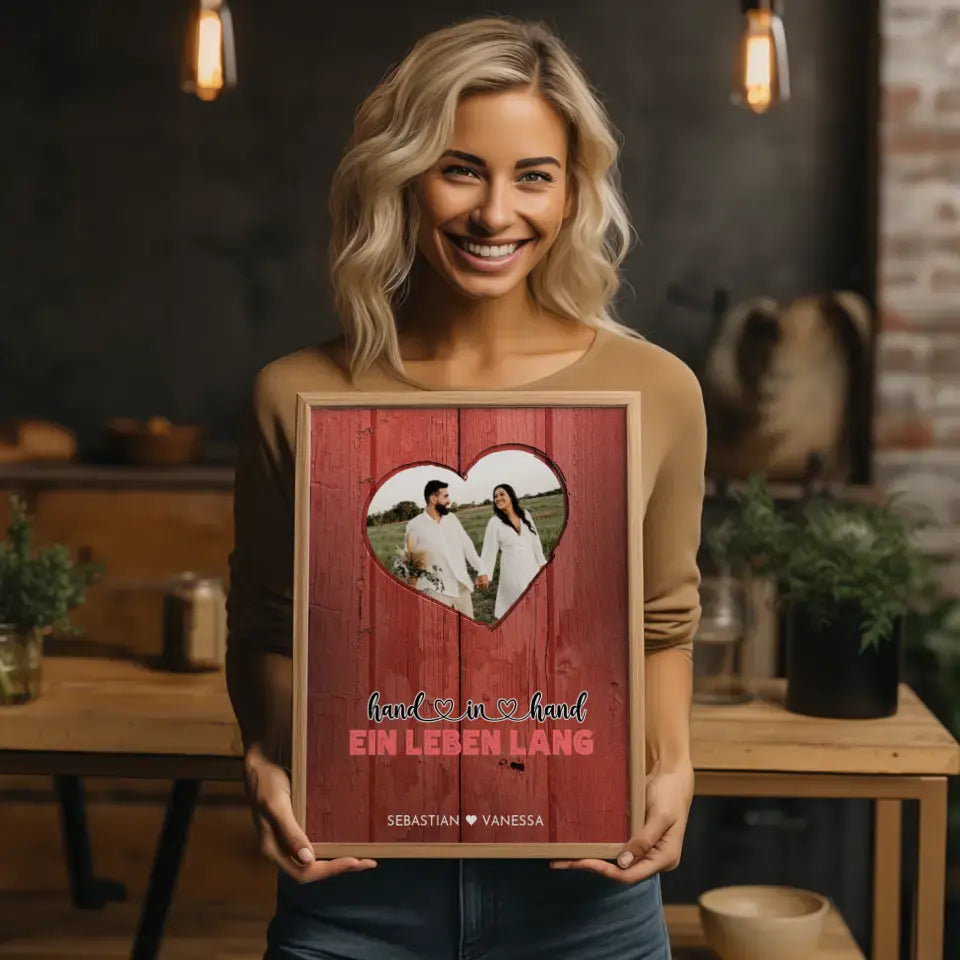 Personalisiertes Herz Poster Holz Stil Rot Du & Ich Wir Mit Foto & Namen