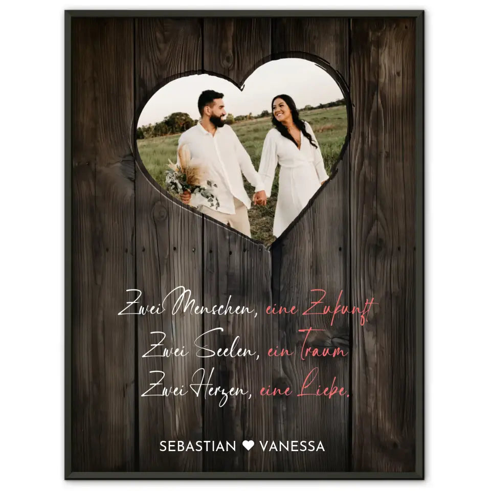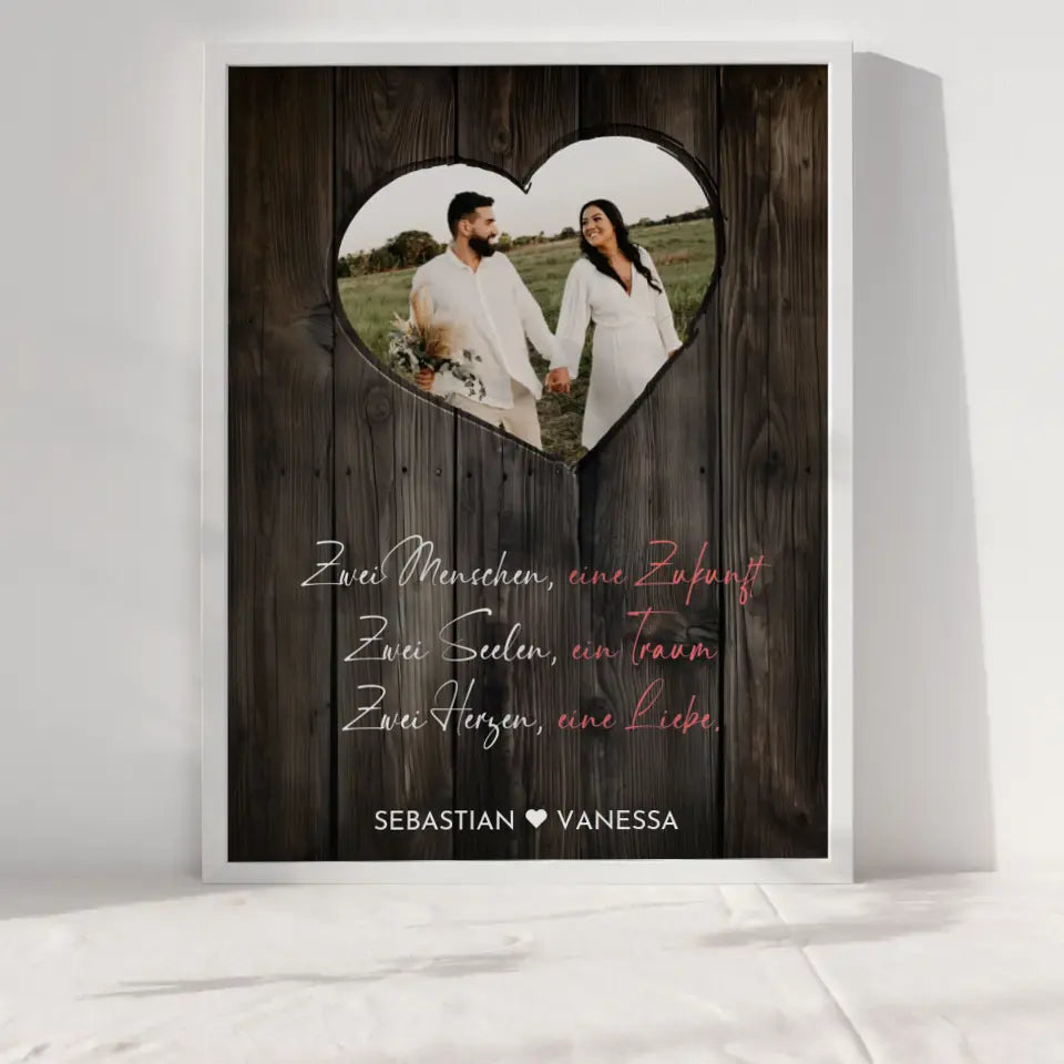 Personalisiertes Herz Poster Liebe Herz Holz Stil Braun Mit Foto & Namen