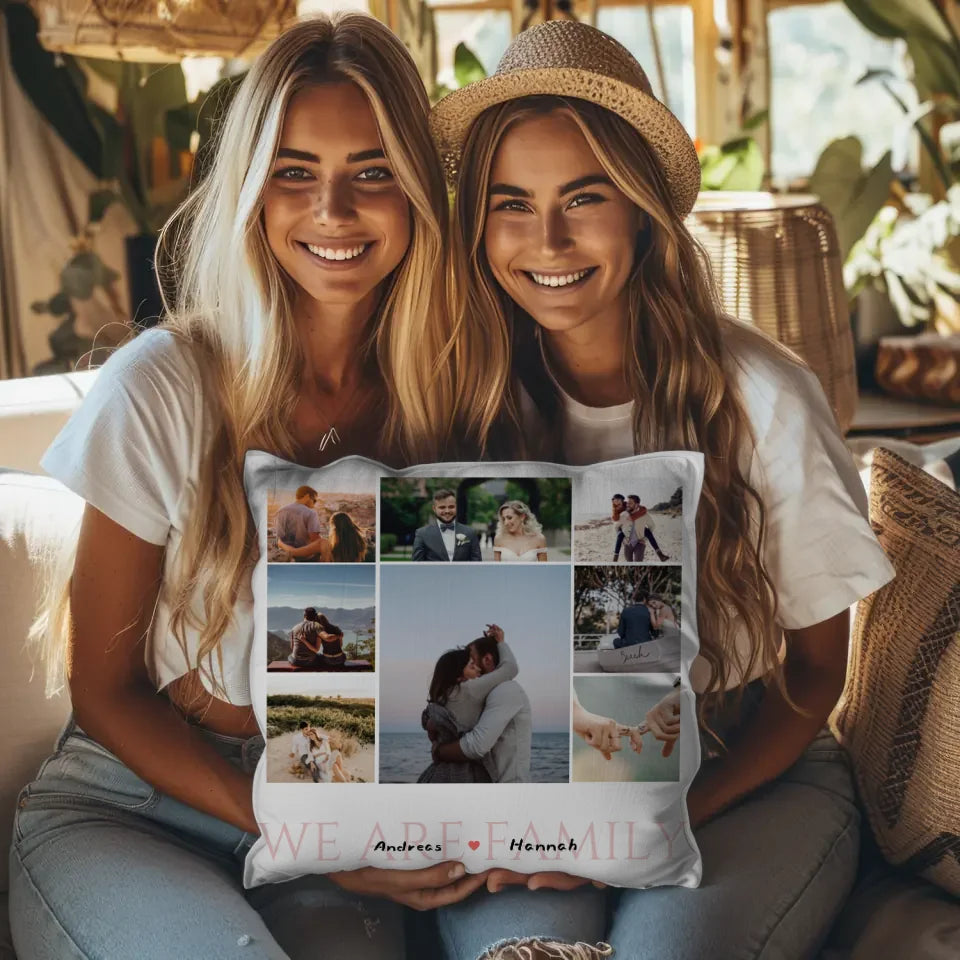 Personalisiertes Kissen Familie Fotocollage 8 Fotos & Namen