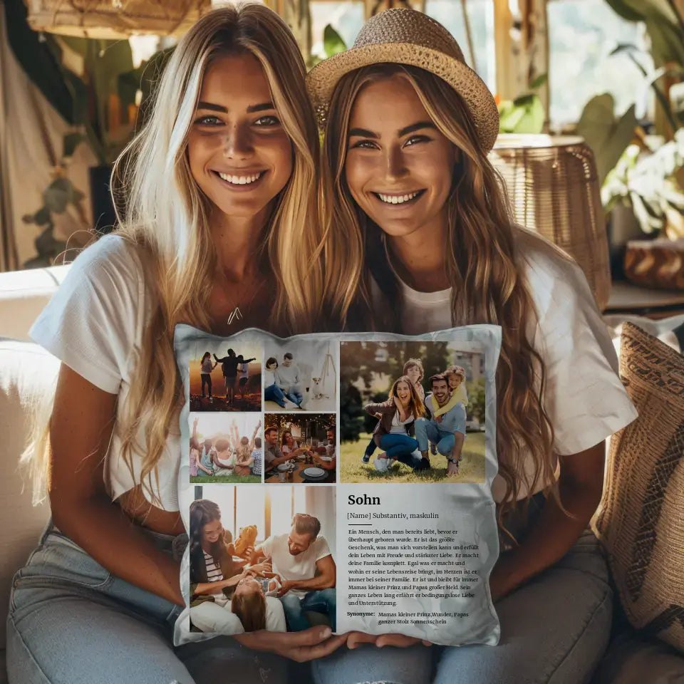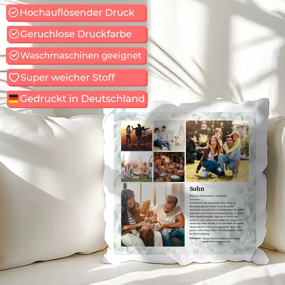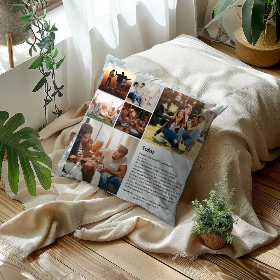 Personalisiertes Kissen Fotocollage Sohn Definition für 6 Fotos