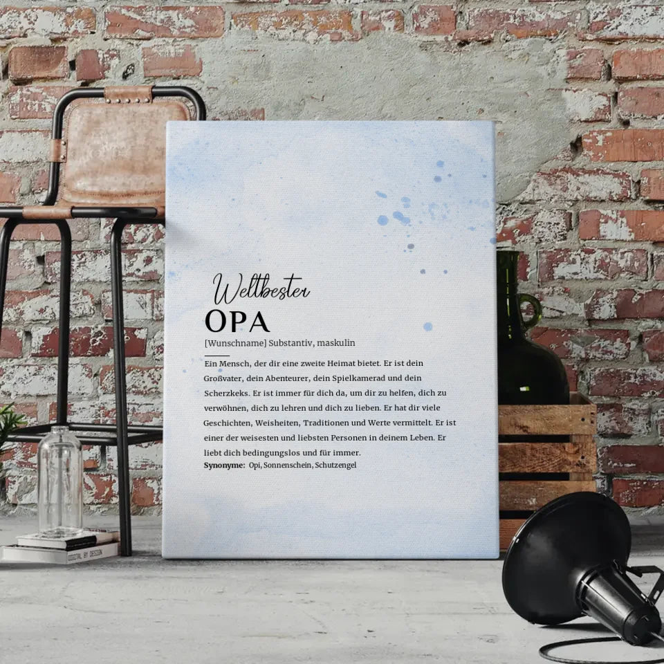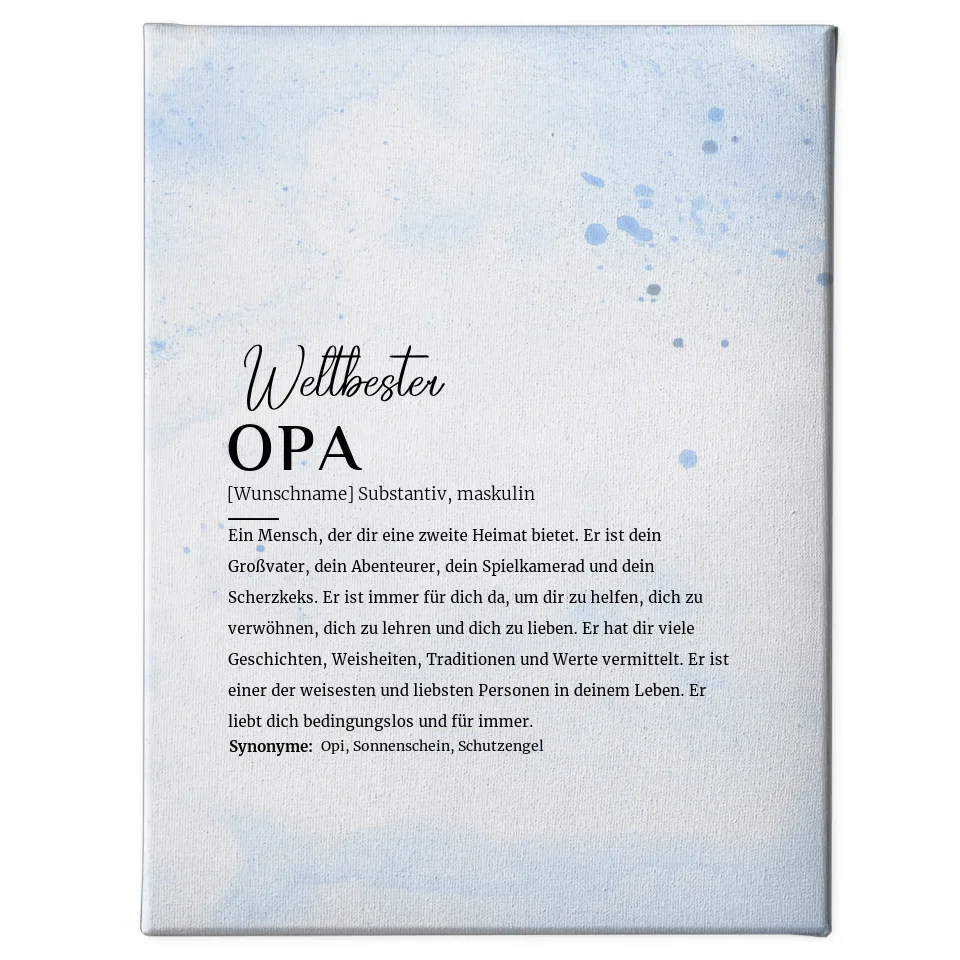 Personalisiertes Leinwandbild Definition Opa Farbspritzer Blau