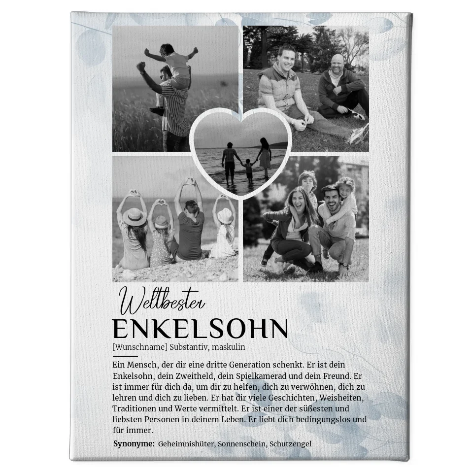 Personalisiertes Leinwandbild Enkelsohn 5 Fotos Black & White Floral Blau