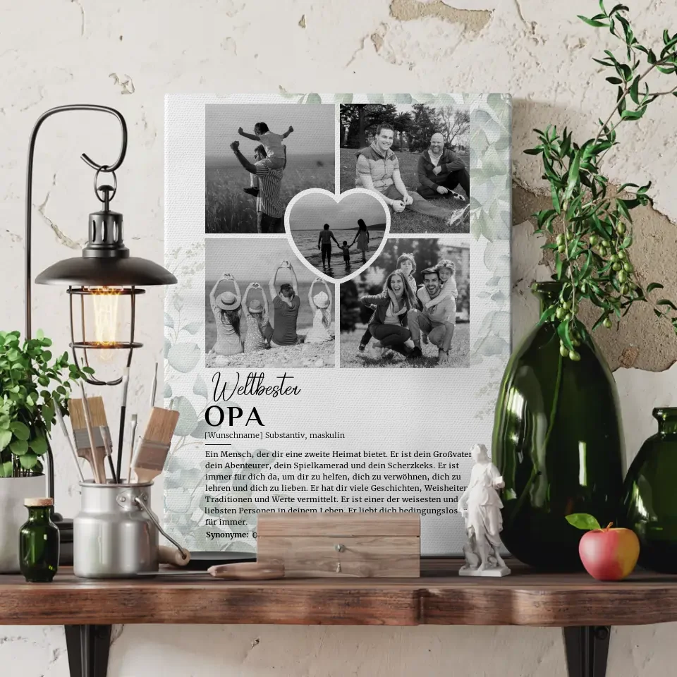 Personalisiertes Leinwandbild Opa Definition 5 Fotos Schwarz Weiß Eukalyptus