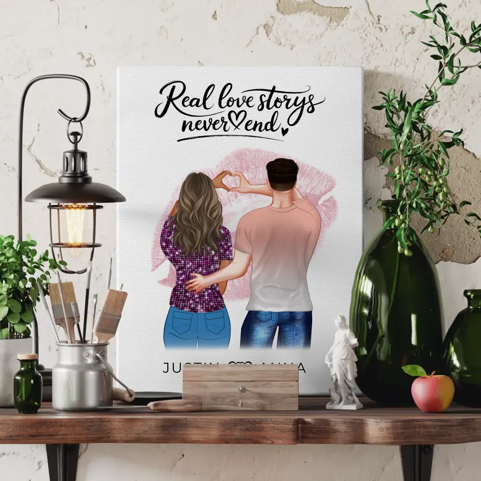 Personalisiertes Leinwandbild Paare Figuren - Real Love Storys Never End