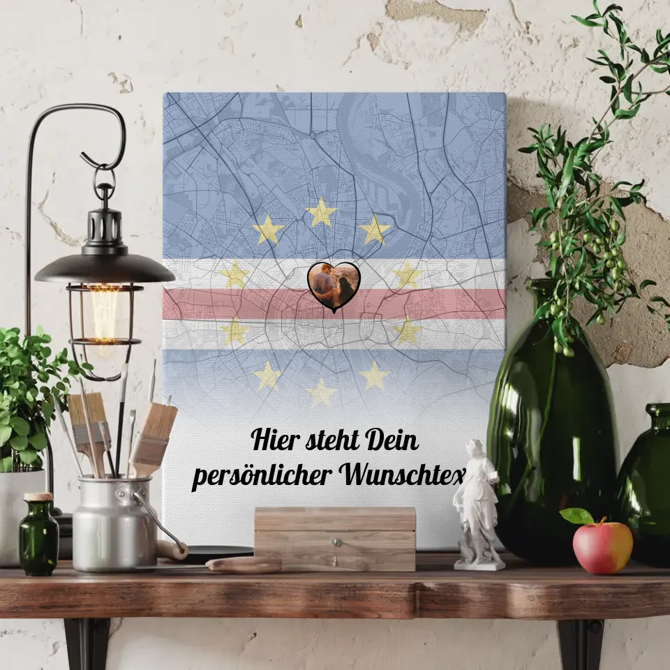 Personalisiertes Leinwandfoto Paare Stadtkarte Kapverden Wunschtext