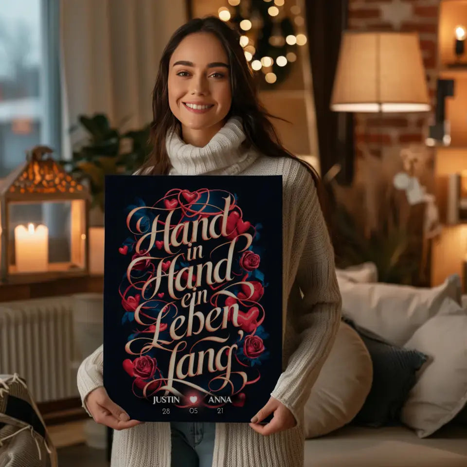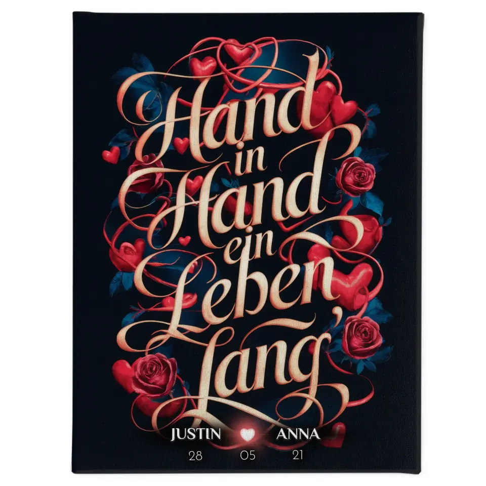 Unsere Personalisiertes Liebes Geschenk Hand In Hand Ein Leben Lang Leinwand