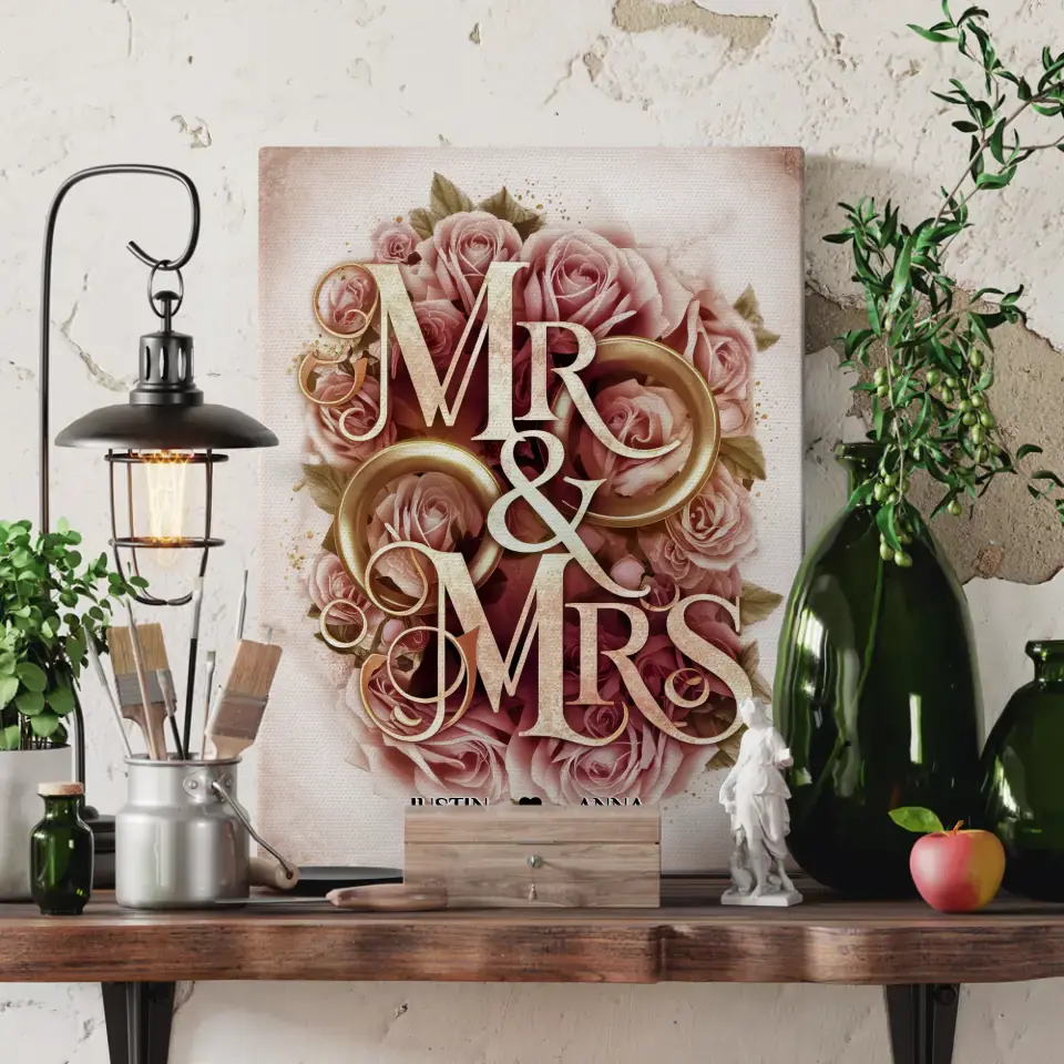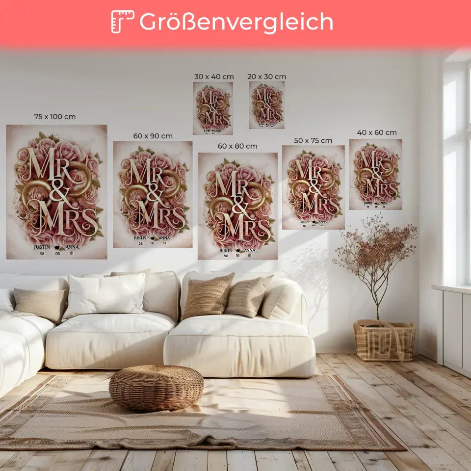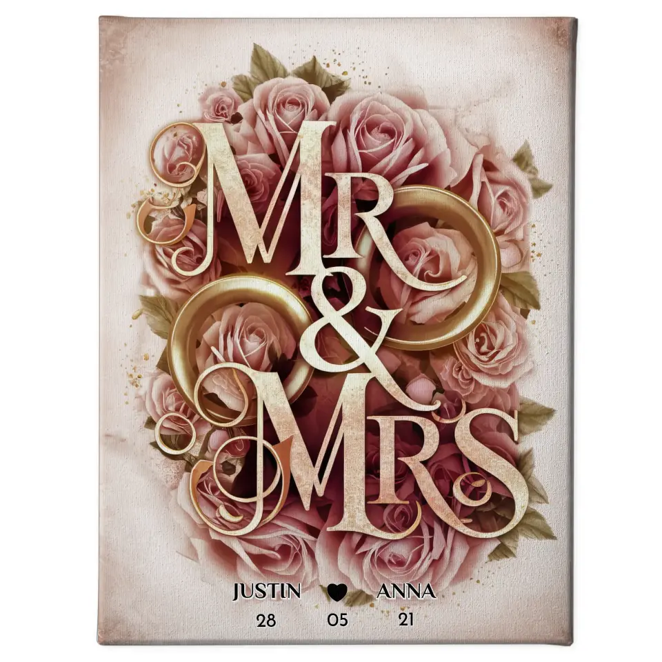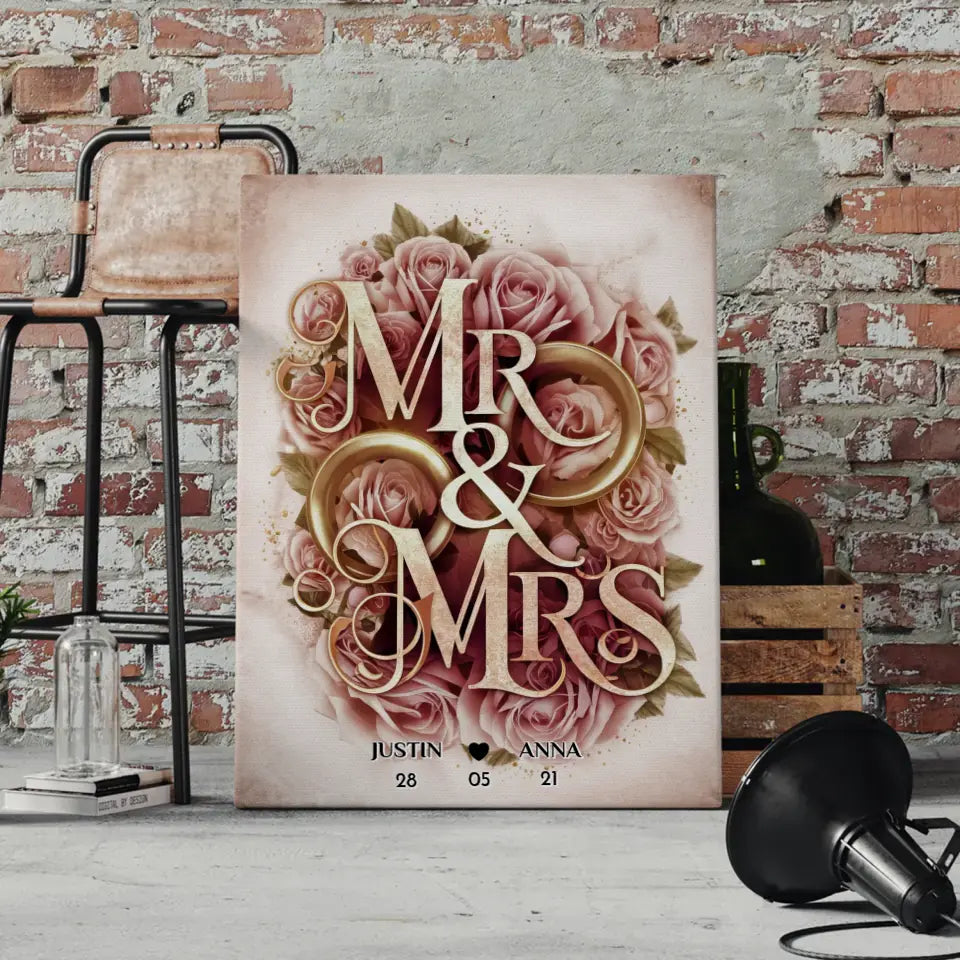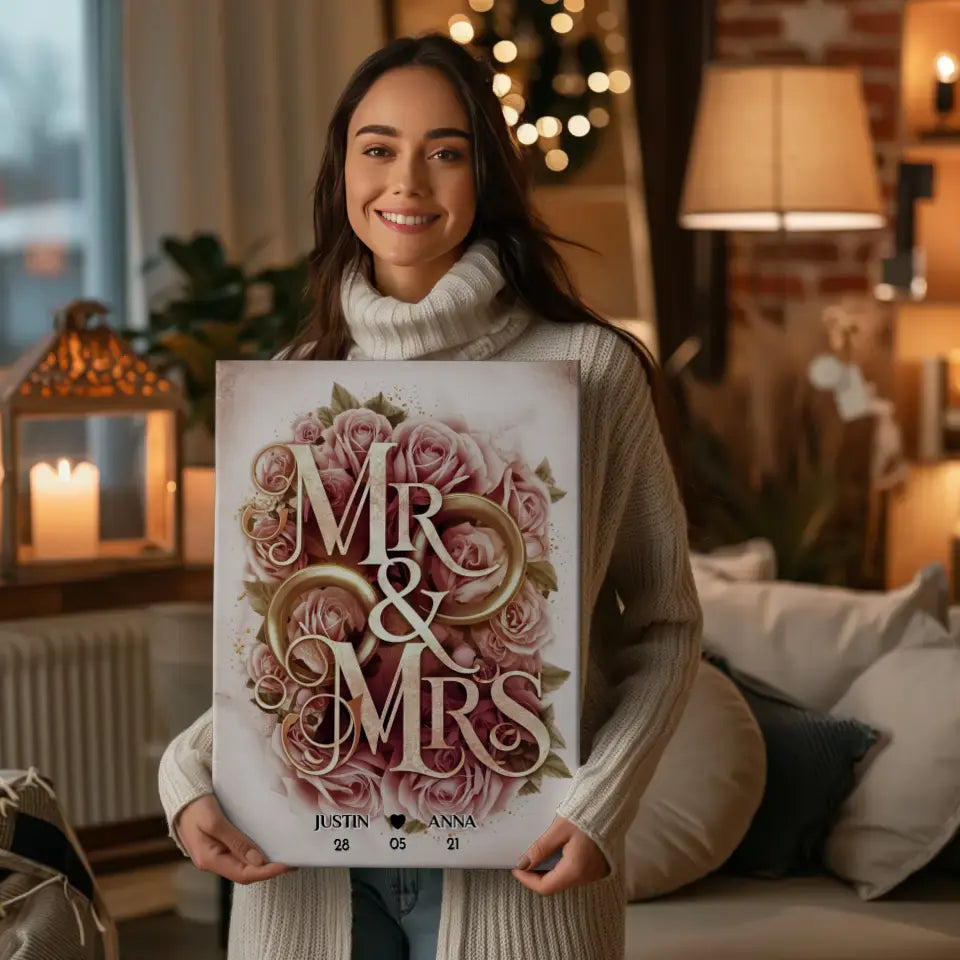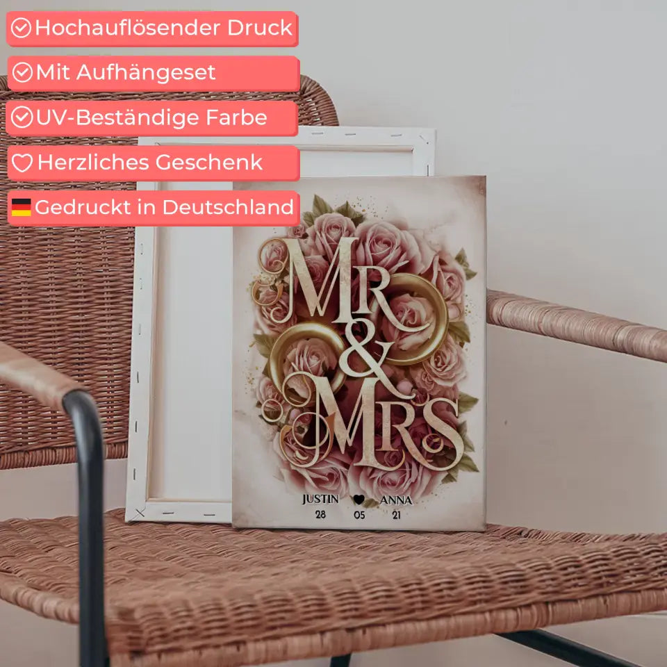 Personalisiertes Liebes Geschenk Mr & Mrs mit Namen & Datum Leinwand