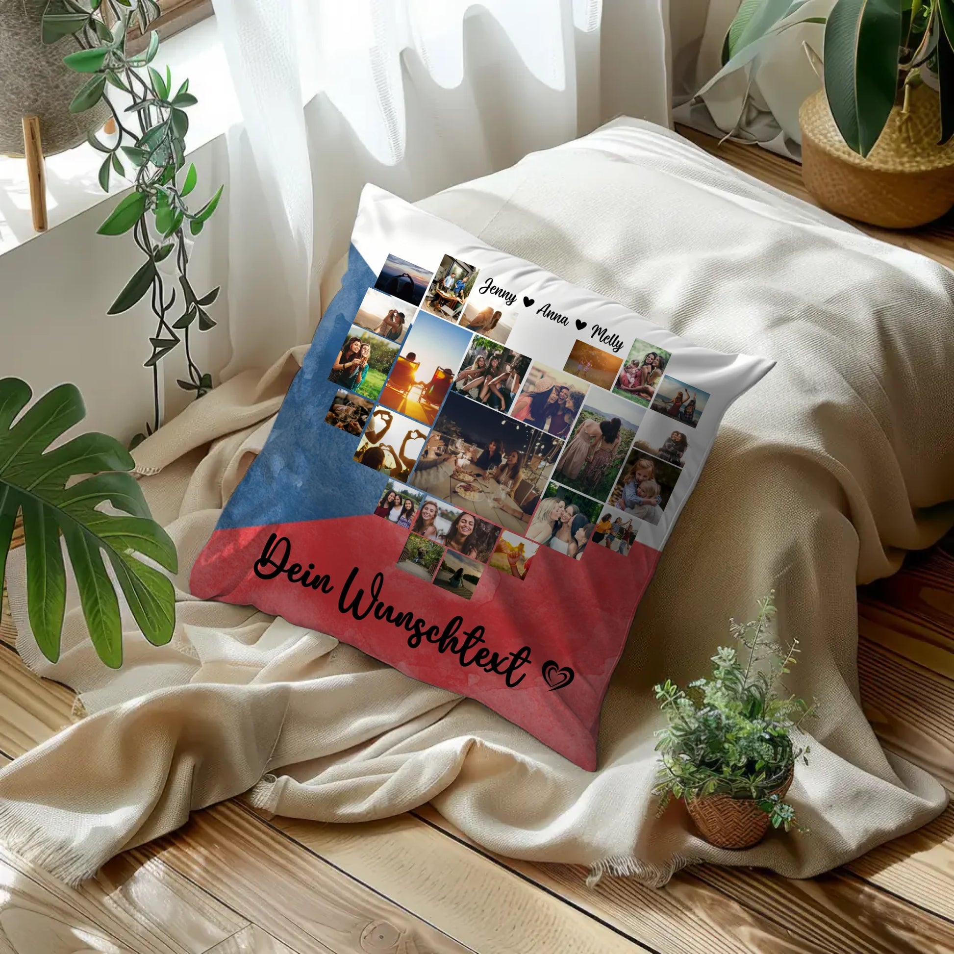 Überrasche deinen Partner oder deine Partnerin mit einem einzigartigen personalisierten Liebes Kissen, das eure schönsten Erinnerungen an euren Urlaub in Tschechien festhält. Dieses Kissen ist nicht nur ein wunderbares Geschenk, sondern auch eine kreative Geschenkidee für den Valentinstag. Mit über 20+ Fotos, die du selbst auswählen kannst, wird jede Fotocollage zu einem individuellen Kunstwerk. Du kannst außerdem Namen, ein persönliches Hintergrundbild und einen eigenen Spruch oder Wunschtext hinzufügen – so entsteht ein ganz persönliches Andenken.