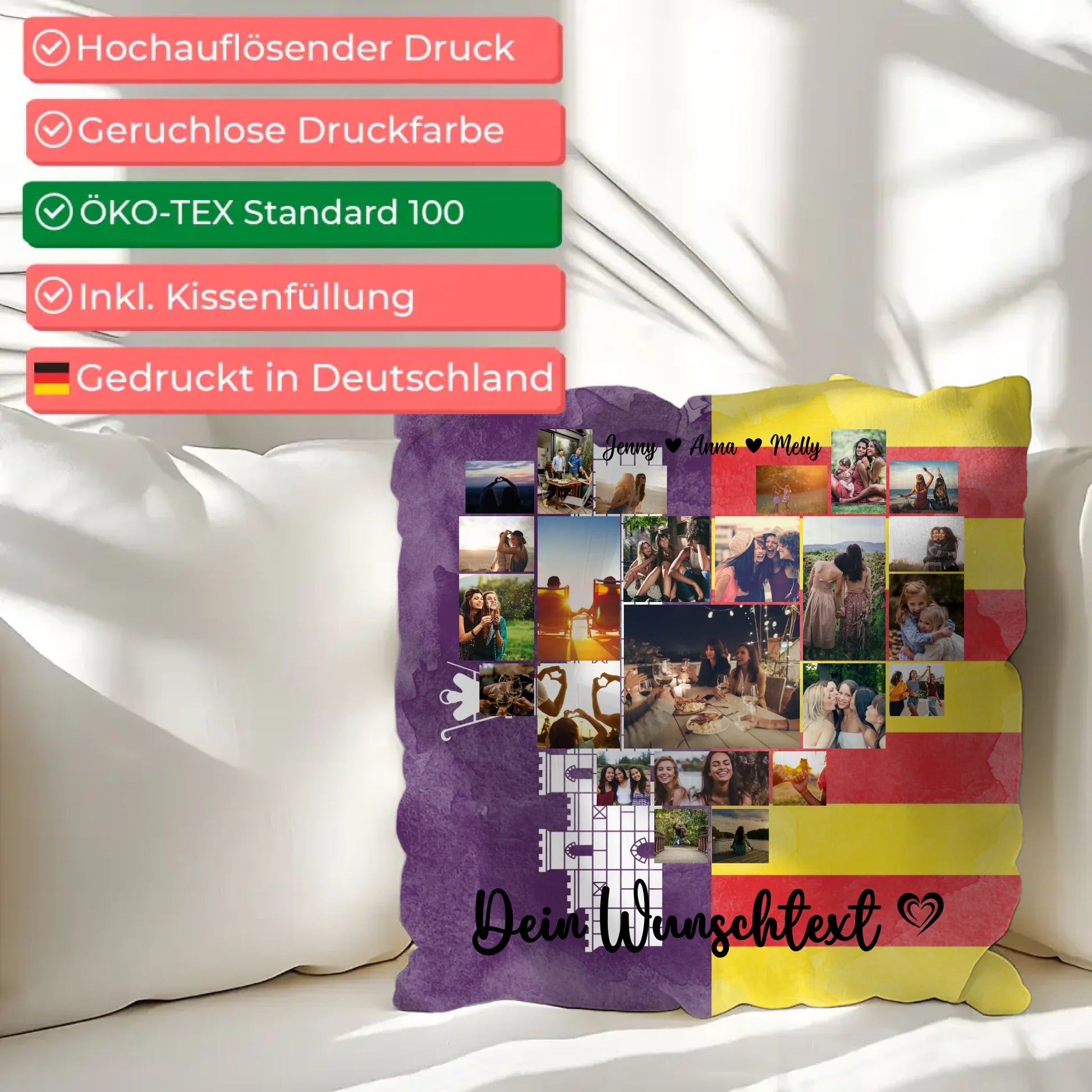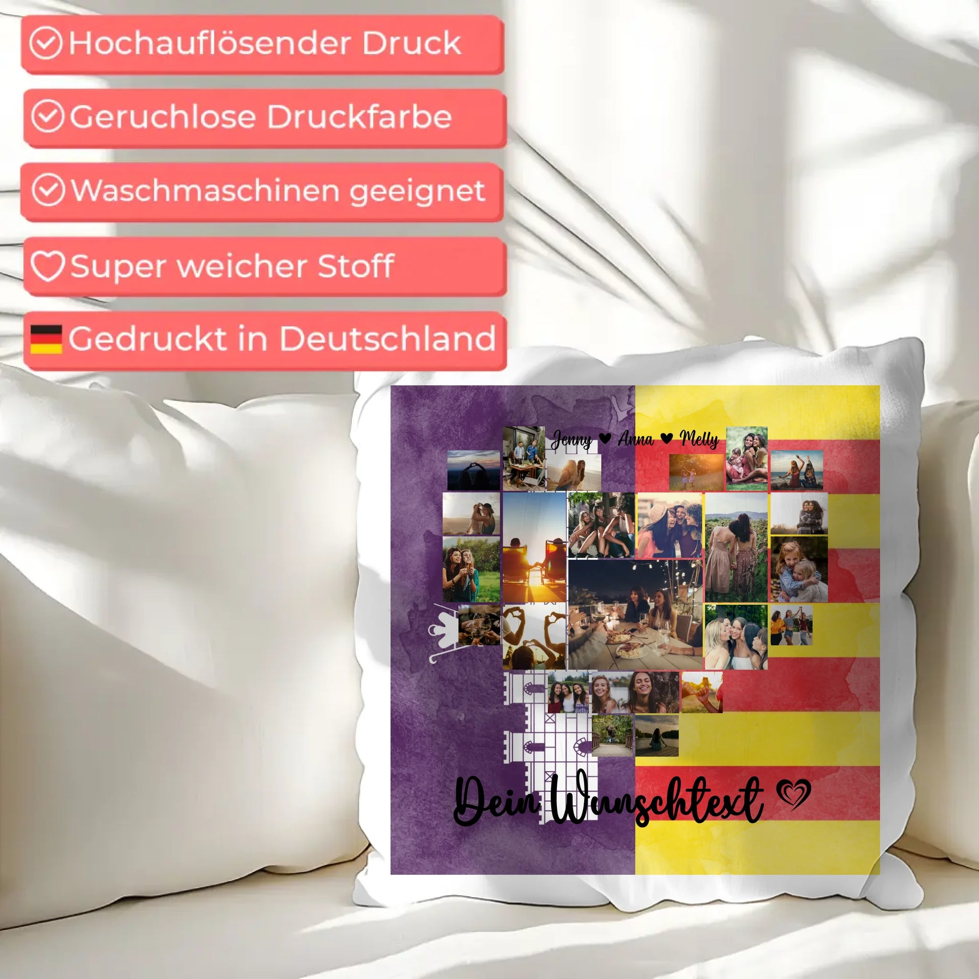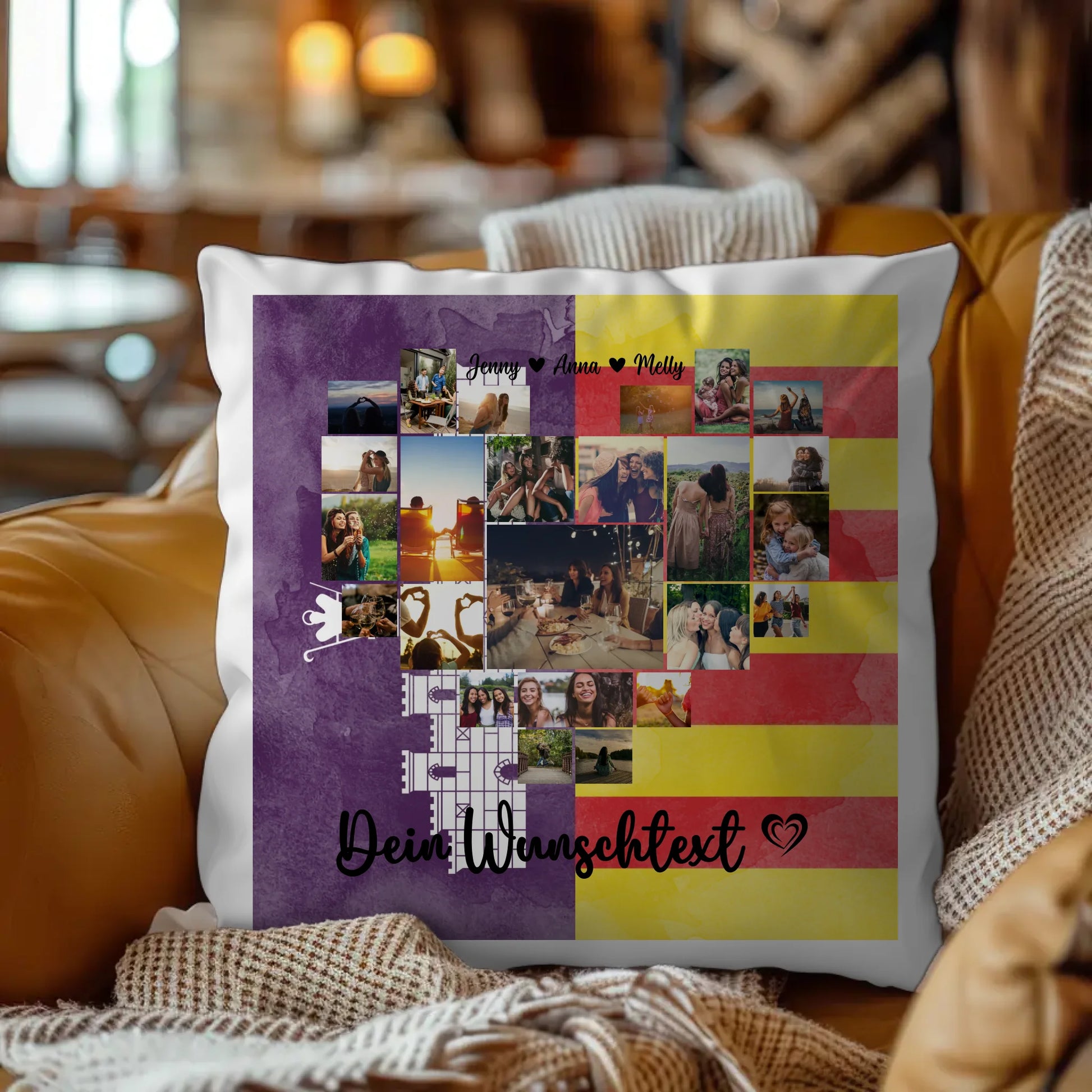 Das personalisierte Liebes Kissen eignet sich hervorragend als Geschenkidee zum Valentinstag oder einfach um euren besonderen Moment im Urlaub auf Mallorca festzuhalten. Die Fotocollage wird zum echten Hingucker in jedem Raum und dekoriert euer Zuhause mit schönen Urlaubserinnerungen. Egal ob ihr über die sonnigen Strände dummelt oder in romantischen Restaurants speist – dieses Kissen erinnert euch immer an eure unvergesslichen Momente beim Reisen.