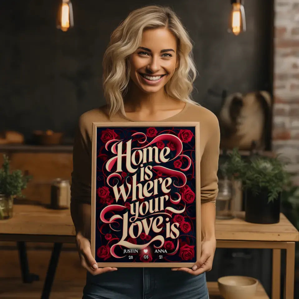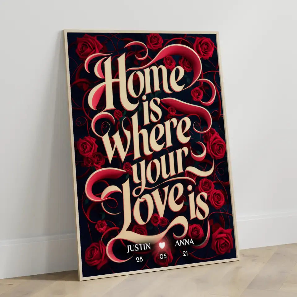 Personalisiertes Liebes Poster Home Is Where Your Love Is