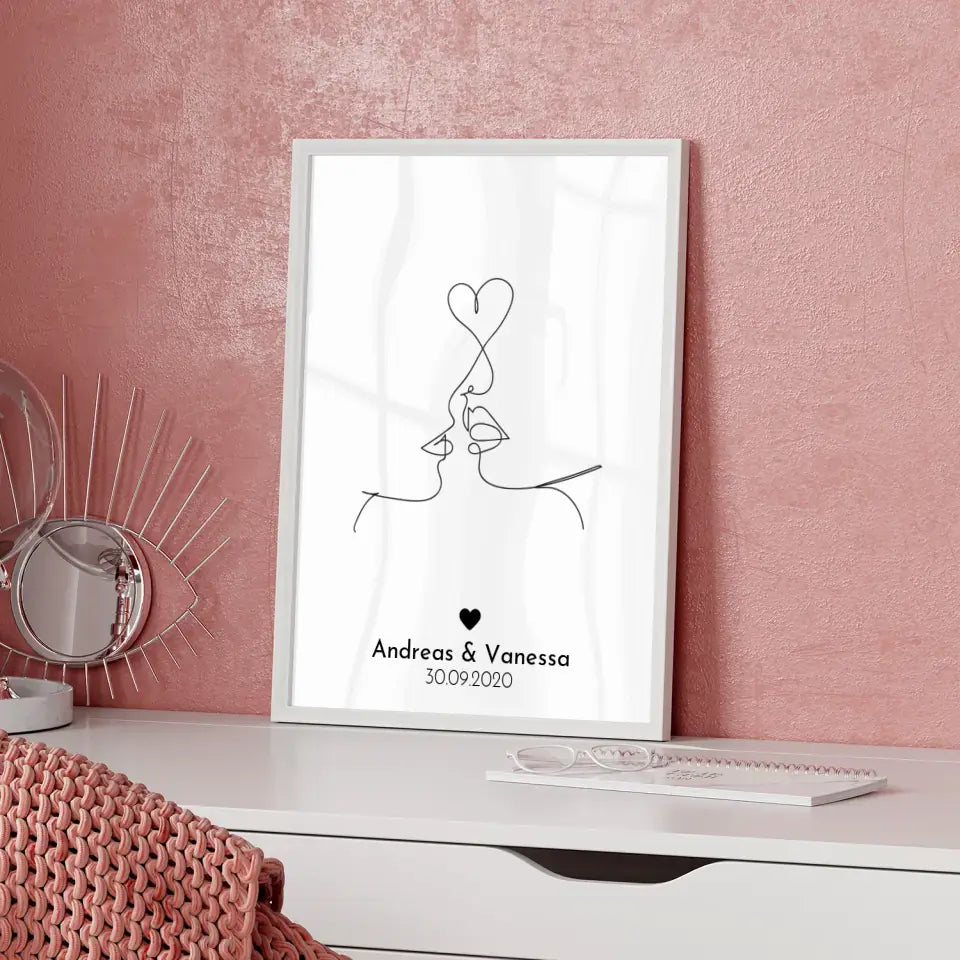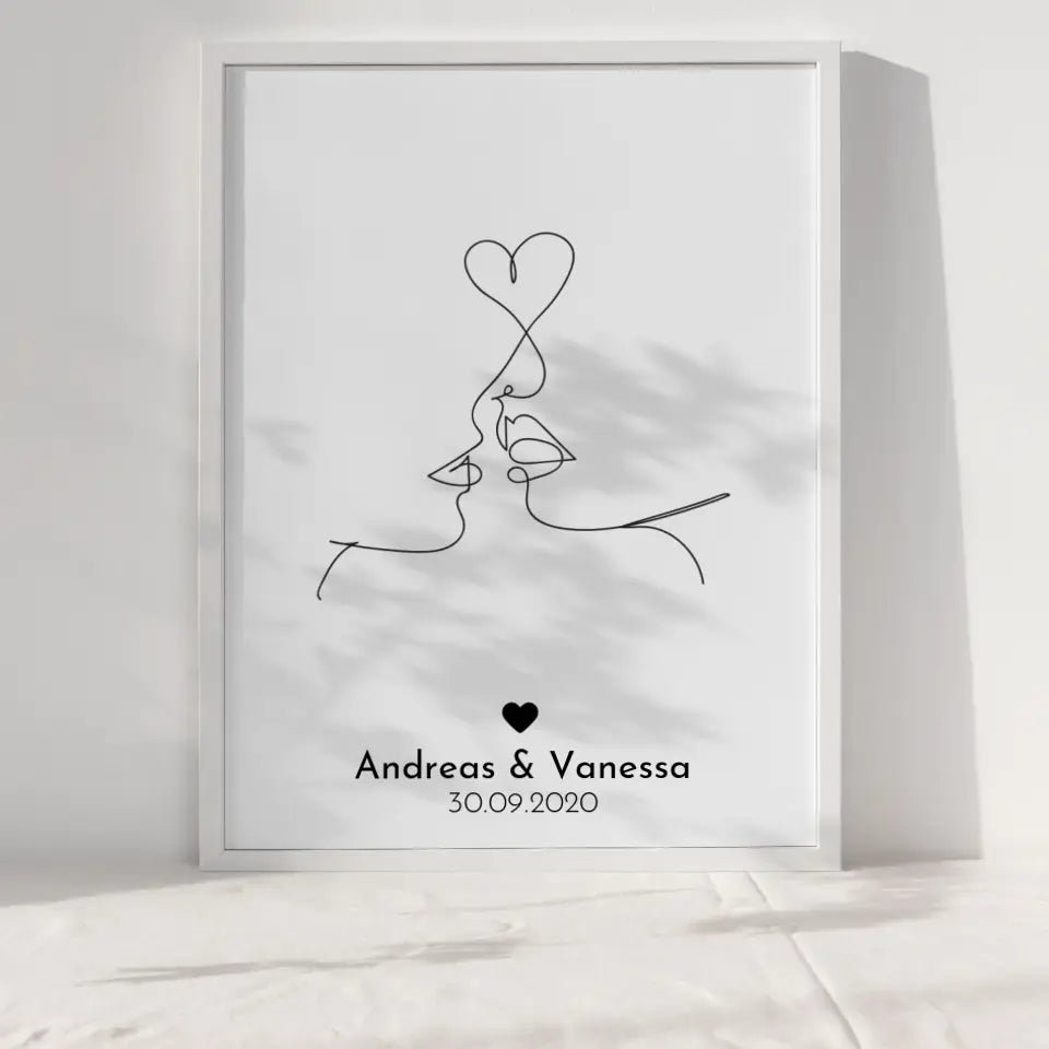 Personalisiertes Liebesposter Art Line Erster Kuss Mit Namen und Datum