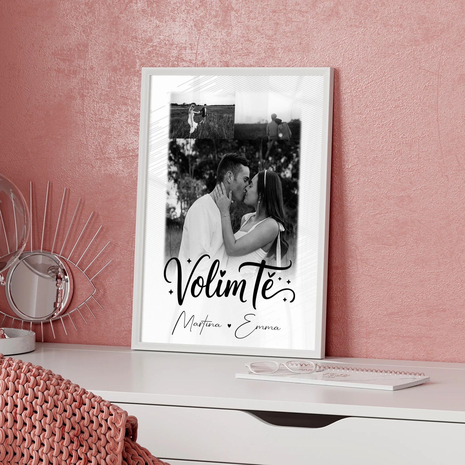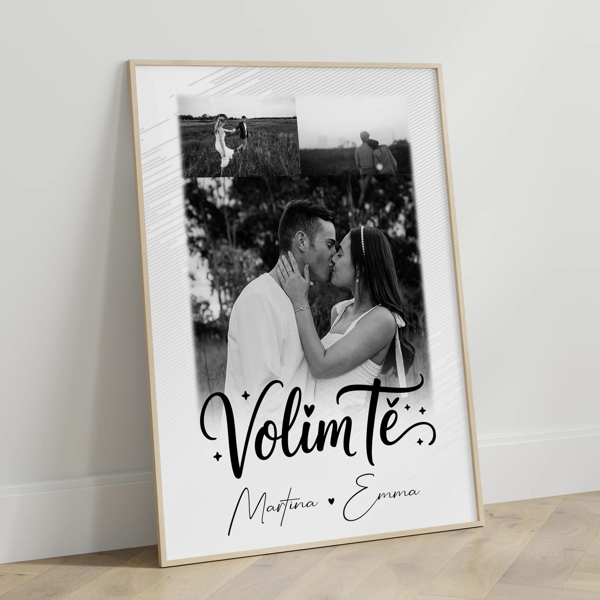 Personalisiertes Liebesposter mit 3 Fotos und Volim te Liebe auf Kroatisch