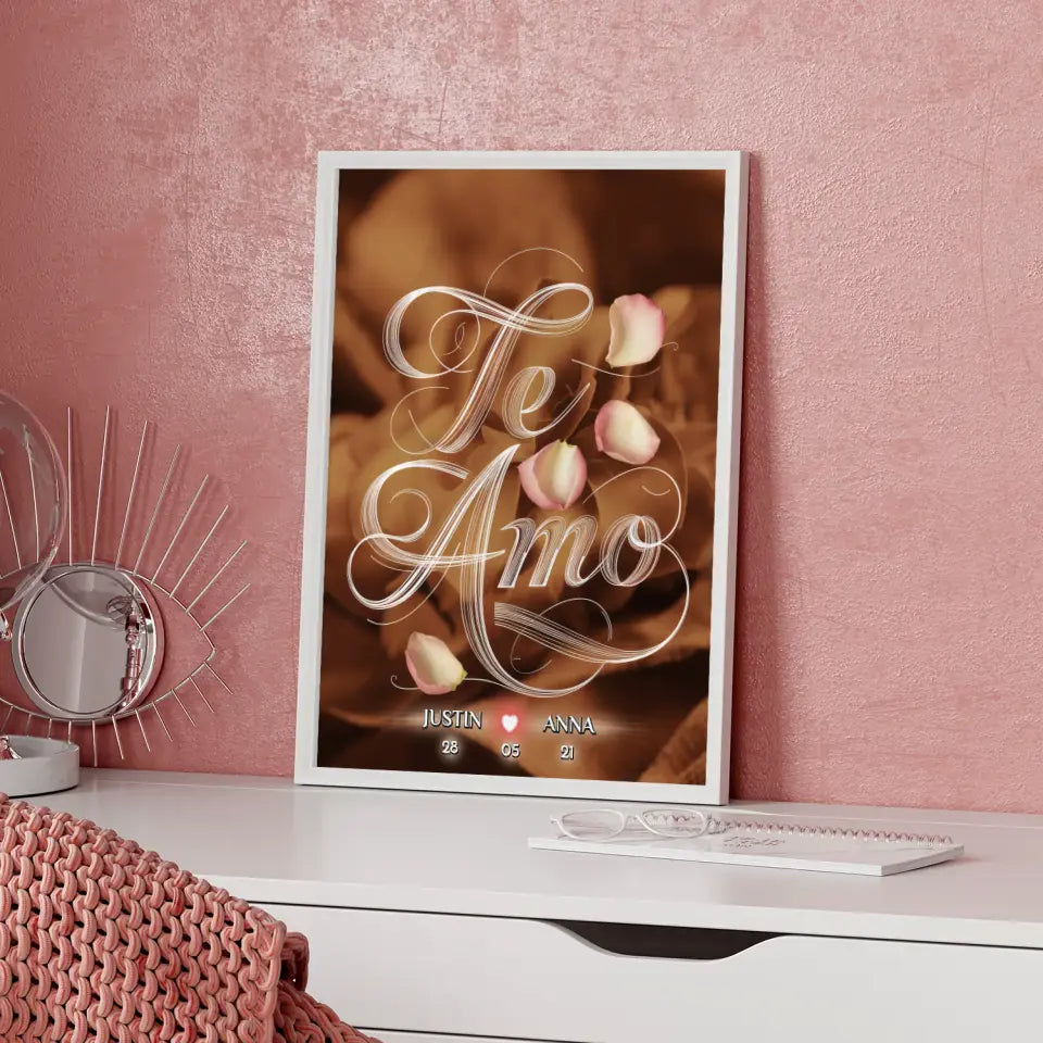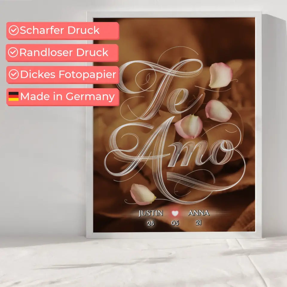 Du möchtest mal wieder etwas einzigartiges verschenken? Unser Personalisiertes Liebesposter Te Amo ein tolles personalisiertes Geschenk.