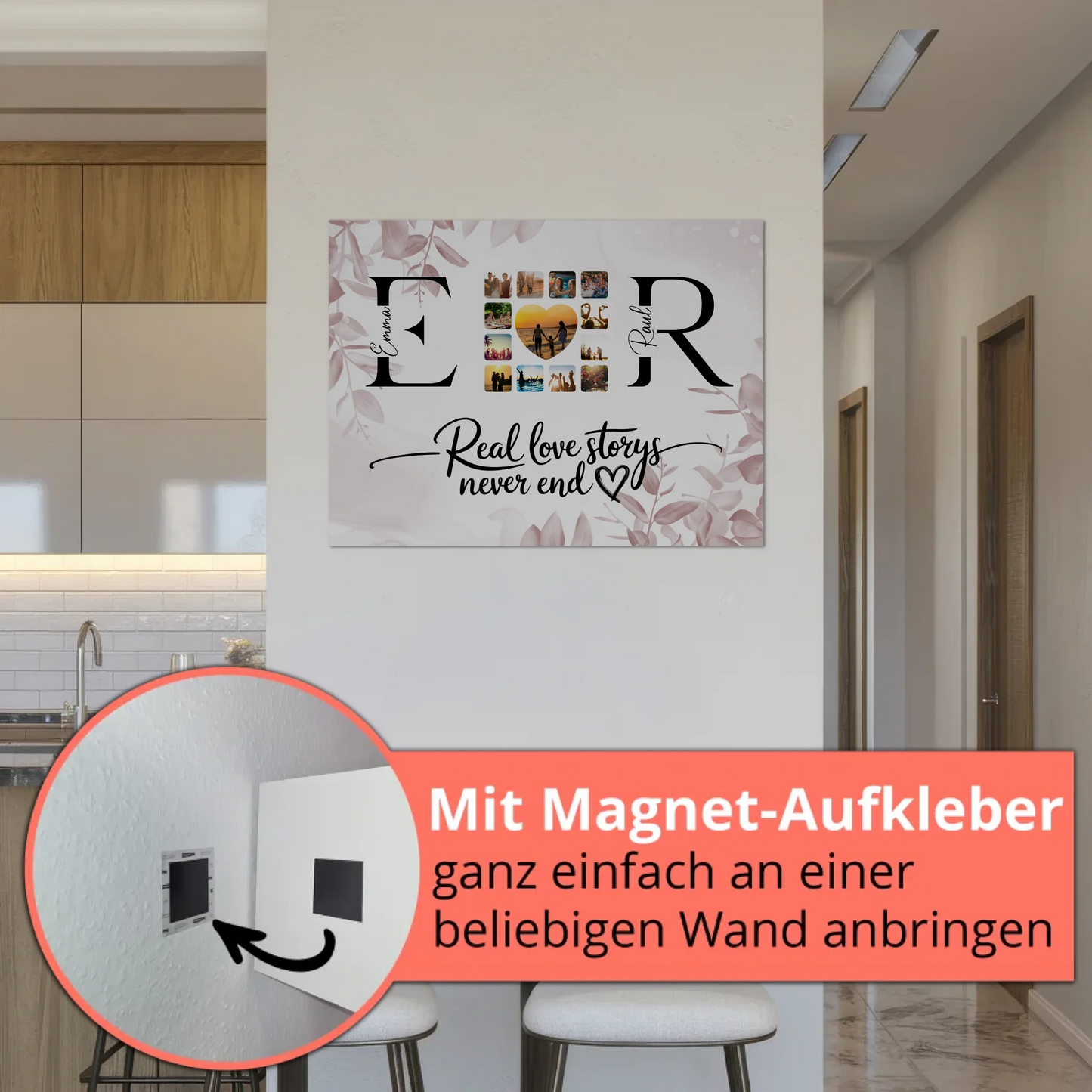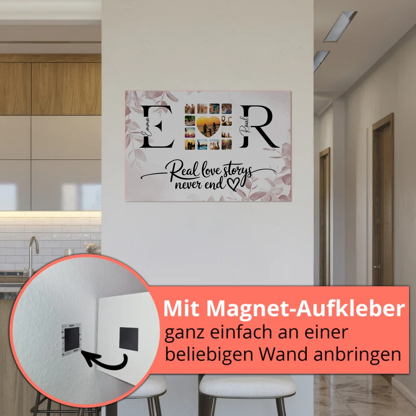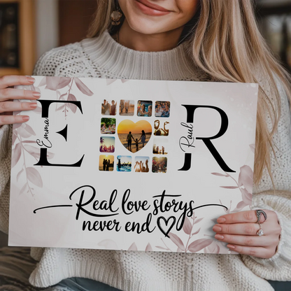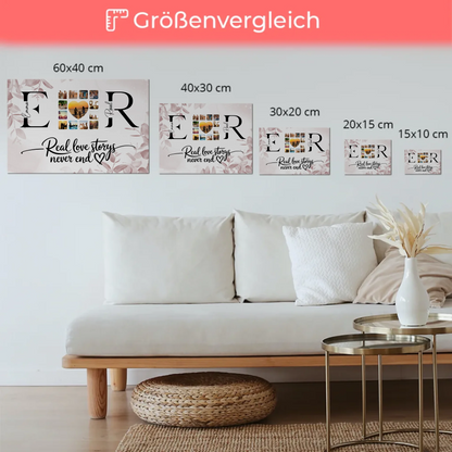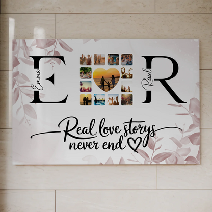 Personalisiertes Magnet Fotoboard Liebe Mit Initialien Namen und Fotos Real Love Storys Never End