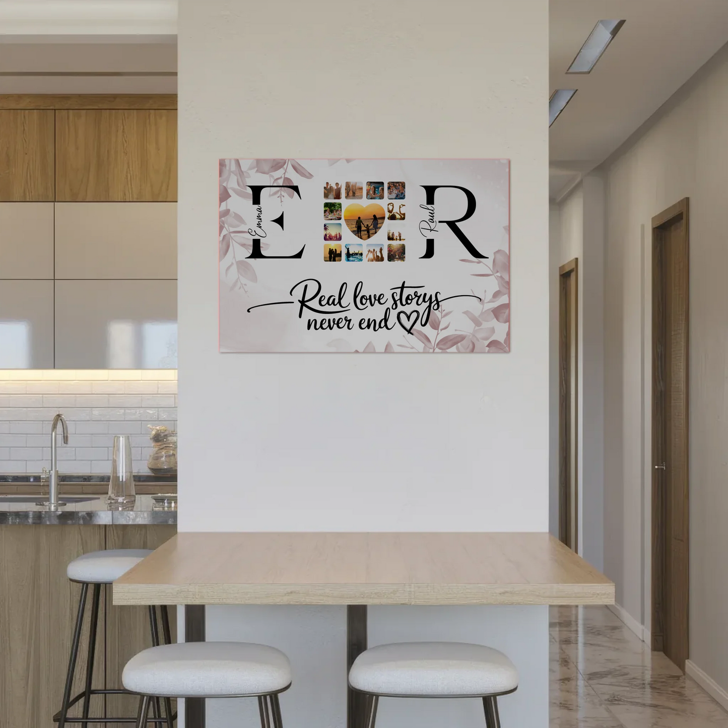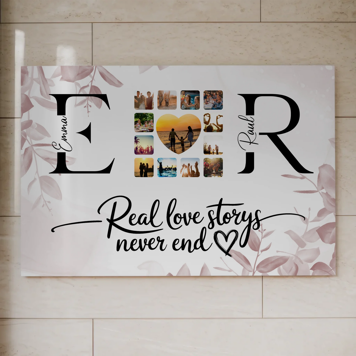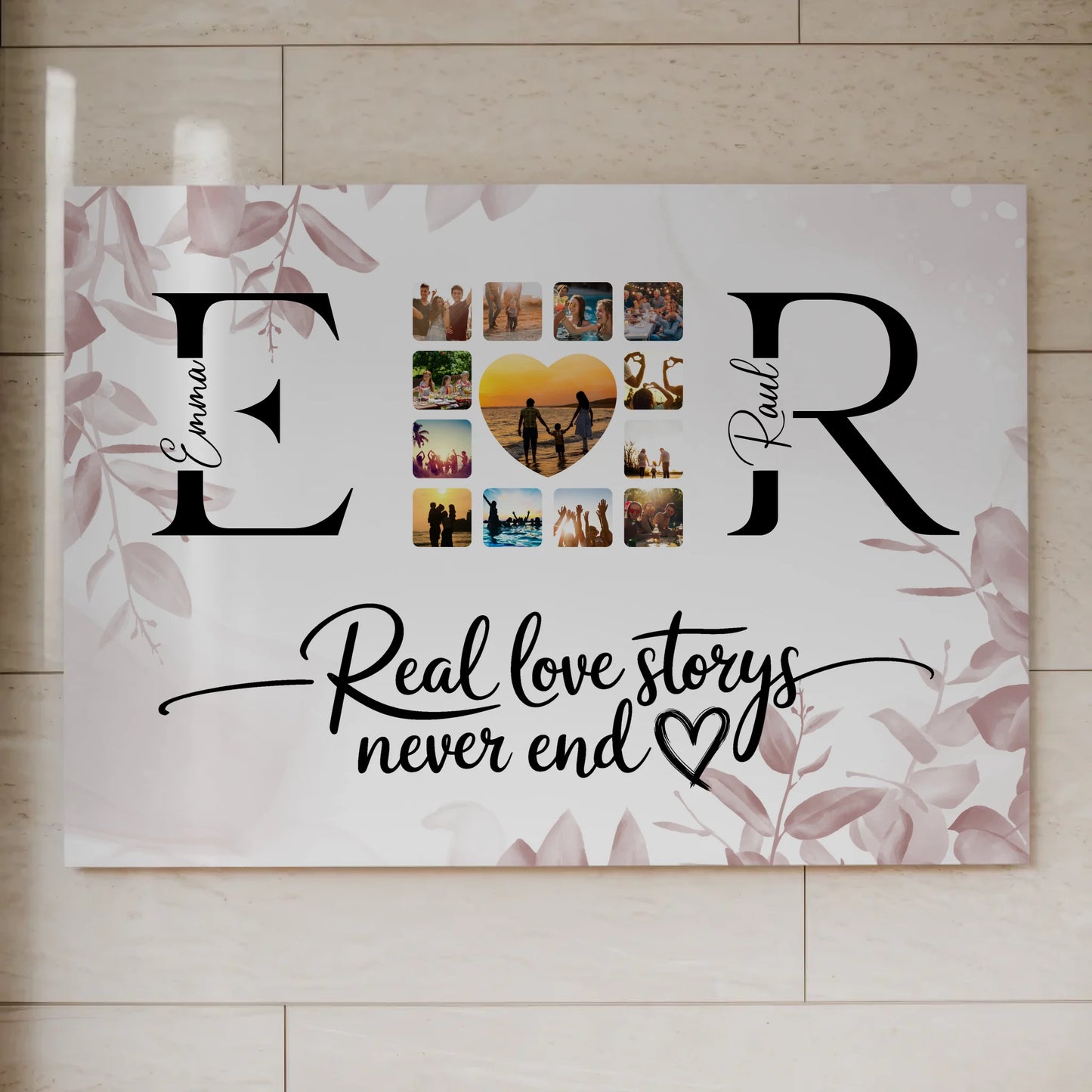Personalisiertes Magnet Fotoboard Liebe Mit Initialien Namen und Fotos Real Love Storys Never End