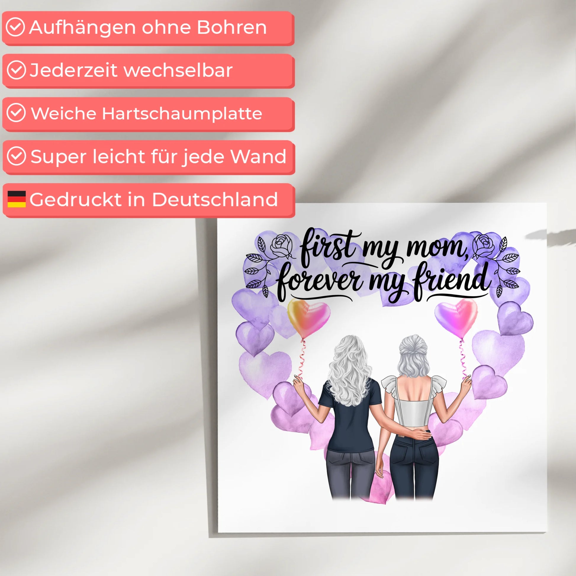Personalisiertes Mama Plakat Fotoboard mit 2 Clipart Frauen, Namen Hintergrund & Wunschtext