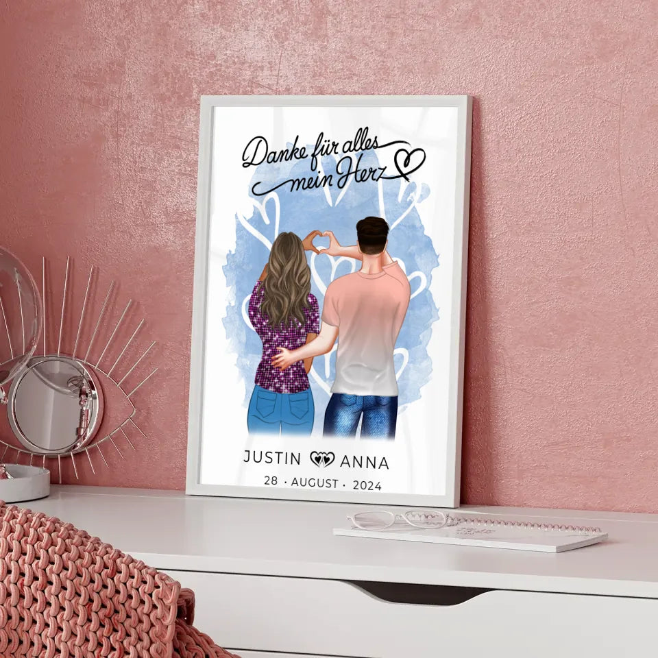 Personalisiertes Paar Poster Figuren Danke Für Alles Mein Herz Verliebte mit Namen