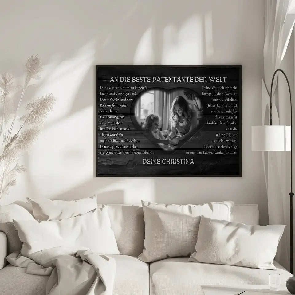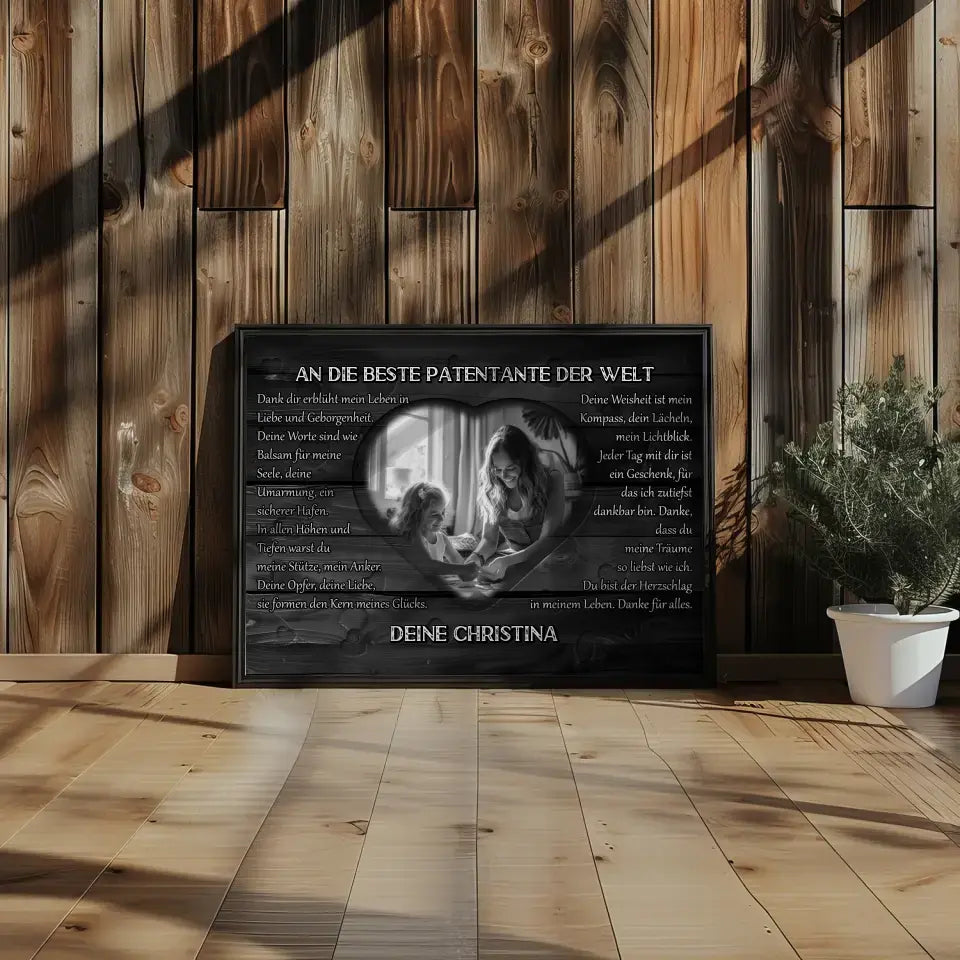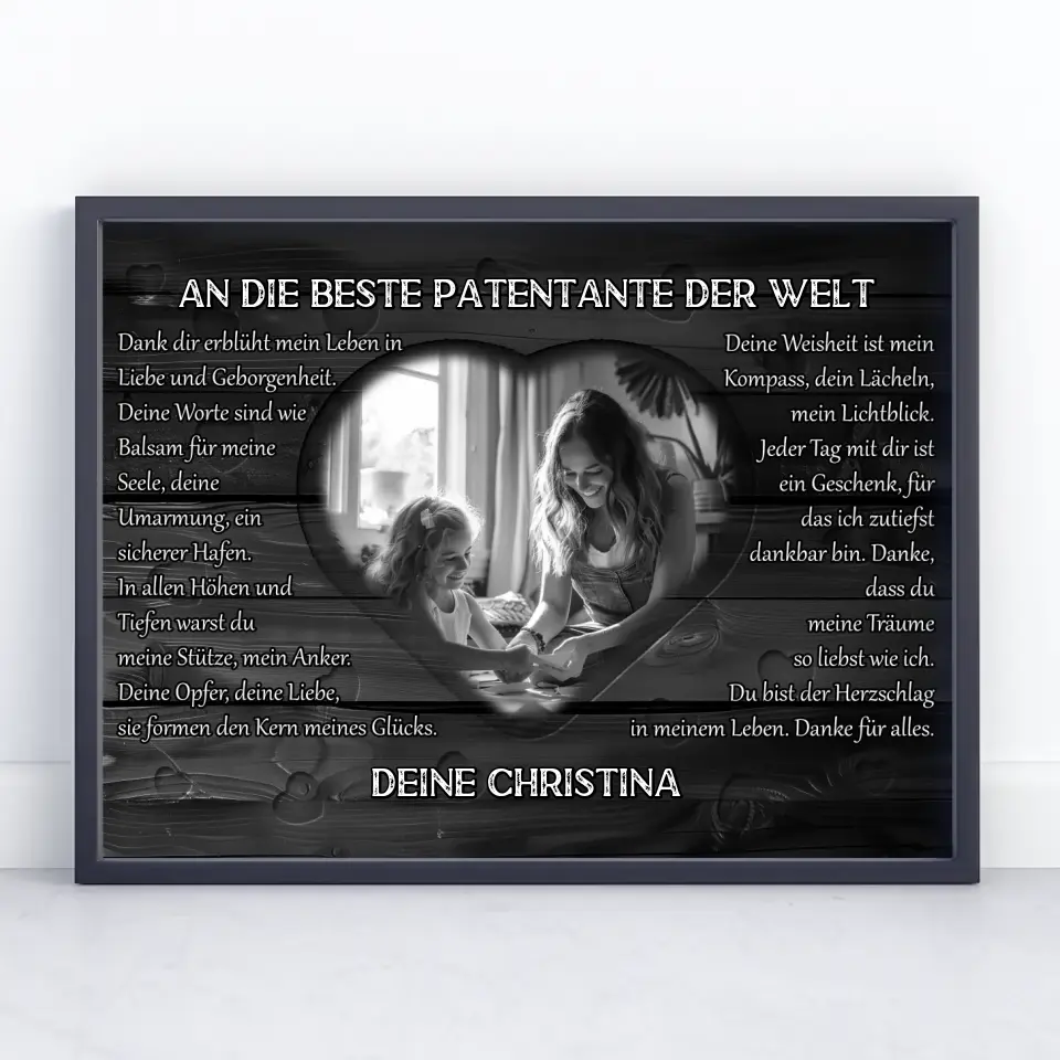 Du möchtest mal wieder etwas einzigartiges verschenken? Unser Personalisiertes Patentante Poster DANKE Schwarz Weiß ein schönes personalisiertes Geschenk.