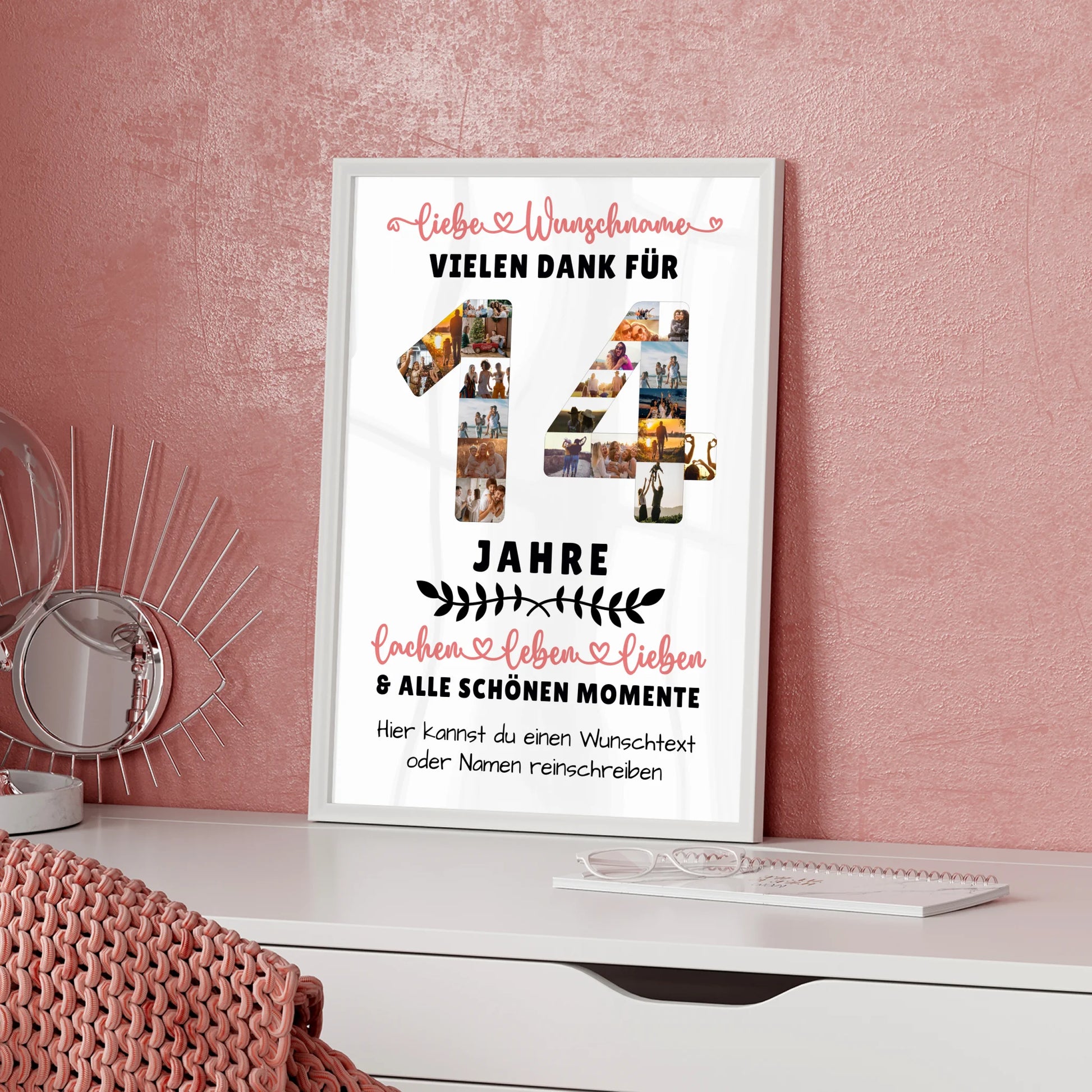 Dieses personalisierte Poster ist mehr als nur ein Geschenk; es ist eine liebevolle Geste zum 14. Geburtstag, die zeigt, wie viel dir die Person bedeutet. Ideal als Geschenk von Papa, Mama, Oma, Opa oder der Tante. Es fängt wertvolle Erinnerungen ein und wird garantiert zum Hingucker im Zimmer deines Sohnes, deiner Tochter, deines Bruders, deiner Schwester, deines Neffen oder deiner Nichte. Auch für die Beste Freundin ist dieses Poster eine tolle Idee zum 14. Geburtstag!