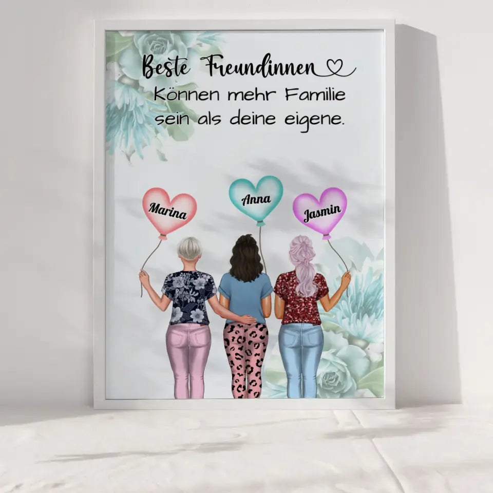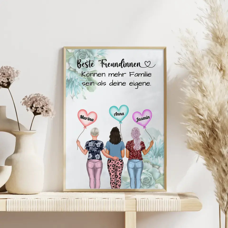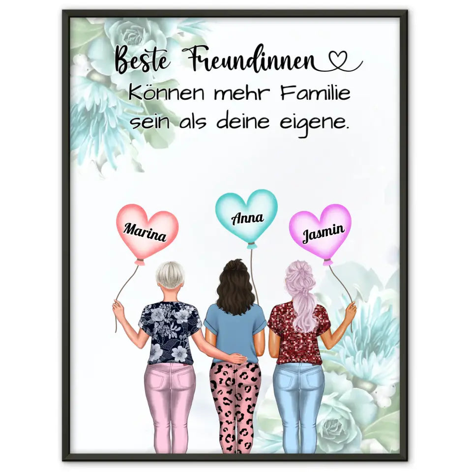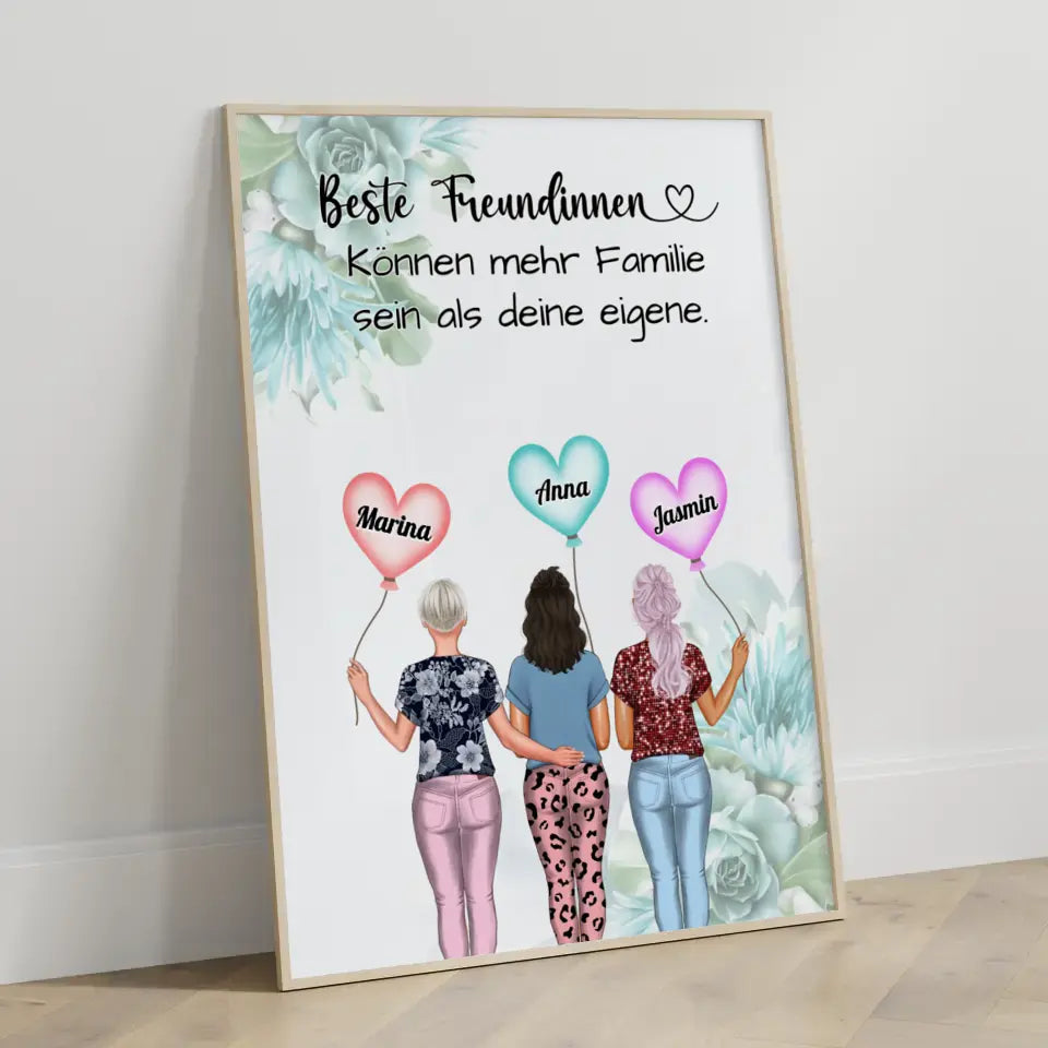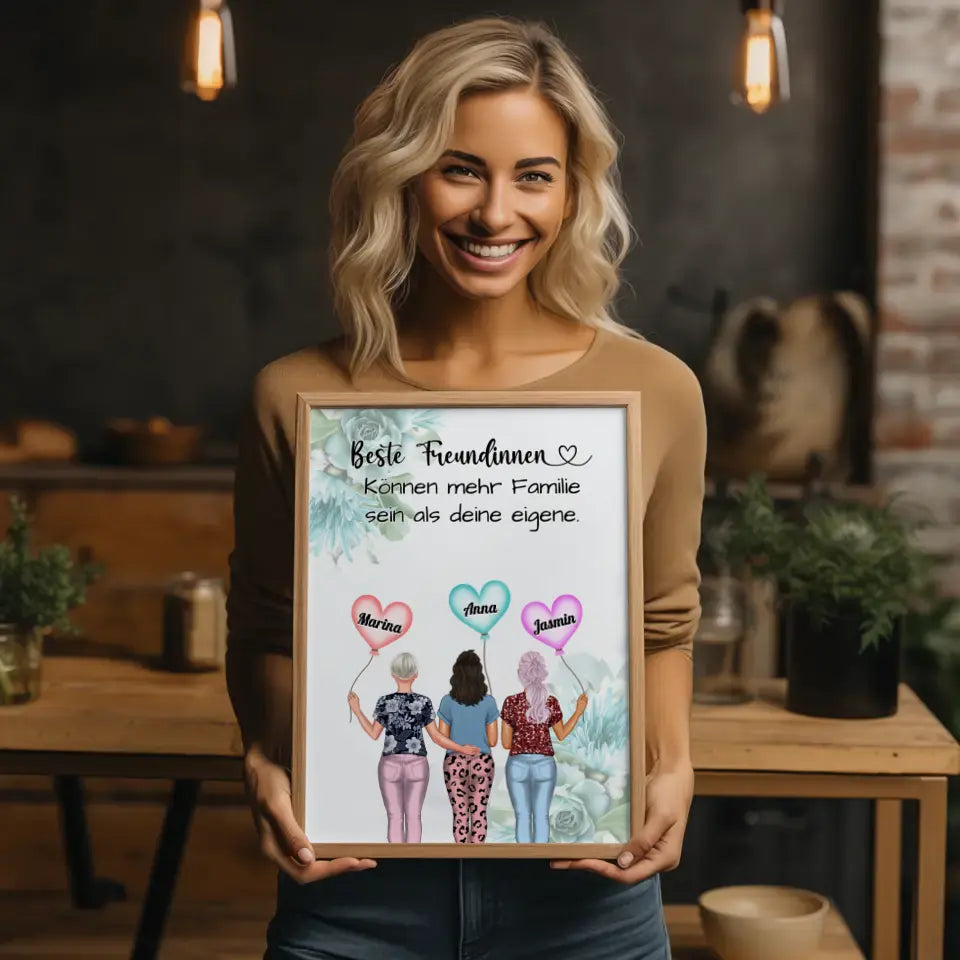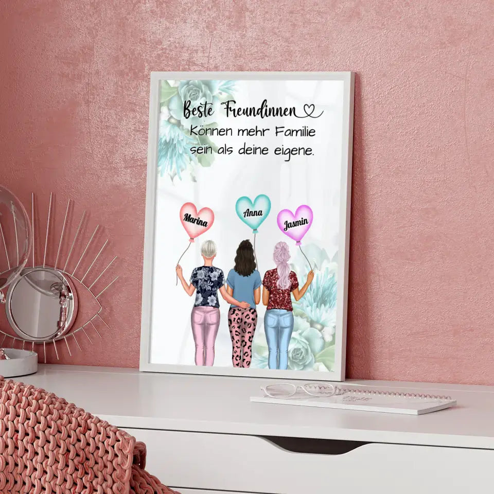 Personalisiertes Poster 3 Freundinnen Familie Für 2 bis 4 Freundinnen