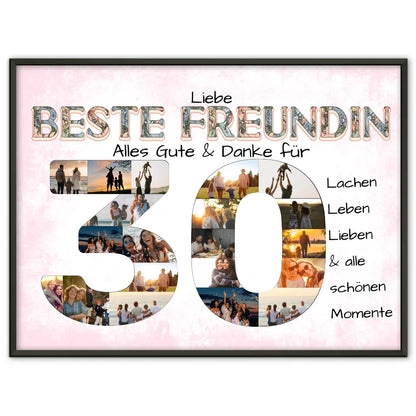 Personalisiertes Poster 30 Geburtstag für Beste Freundin Viele Fotos